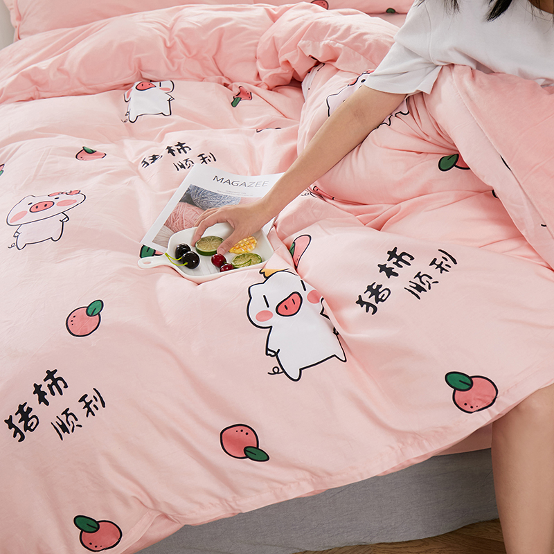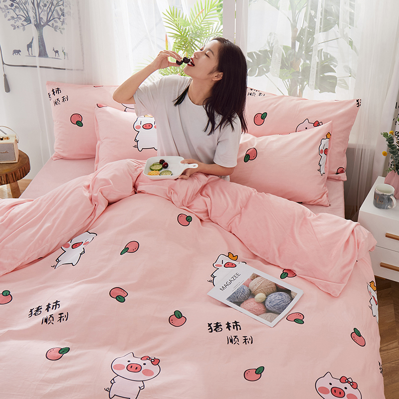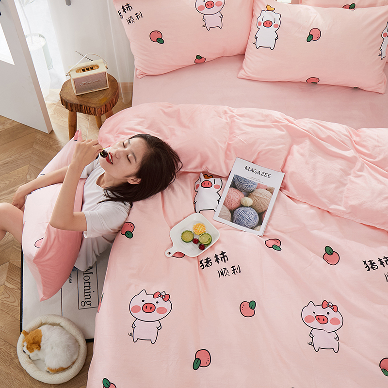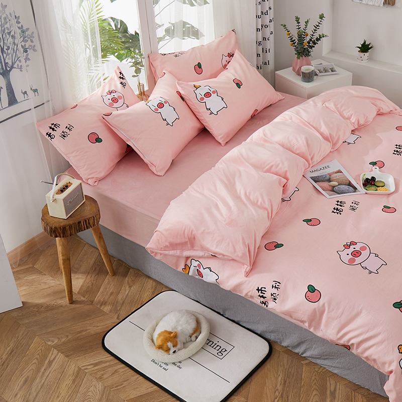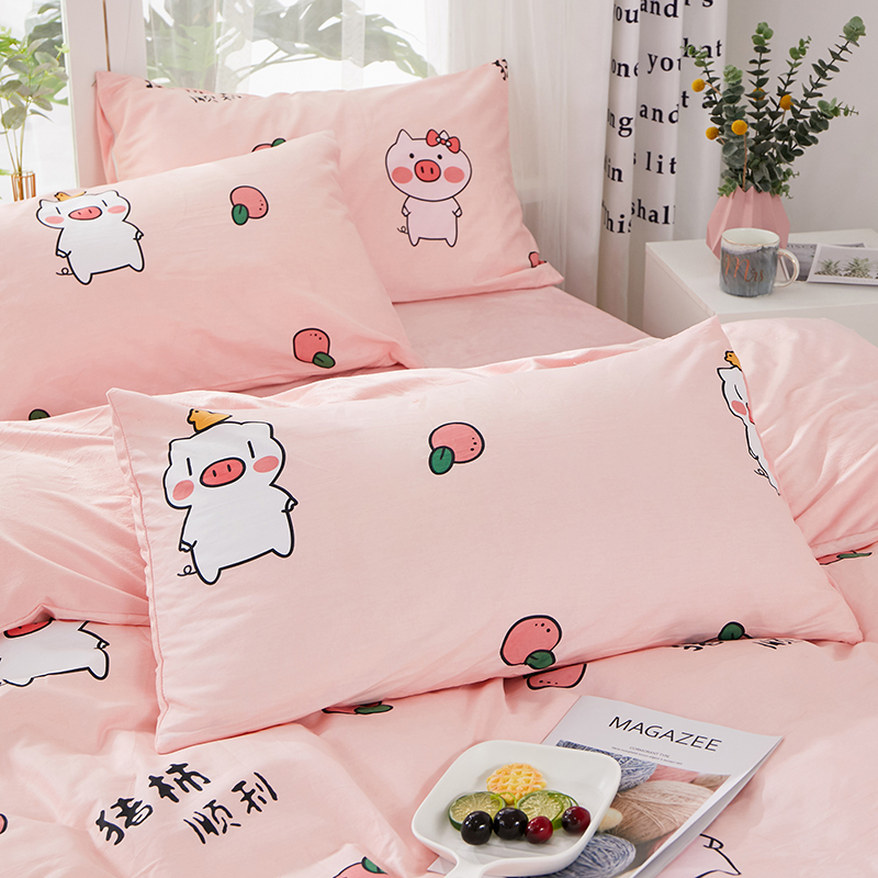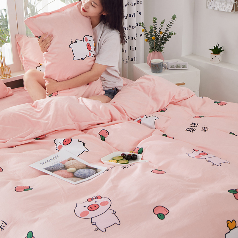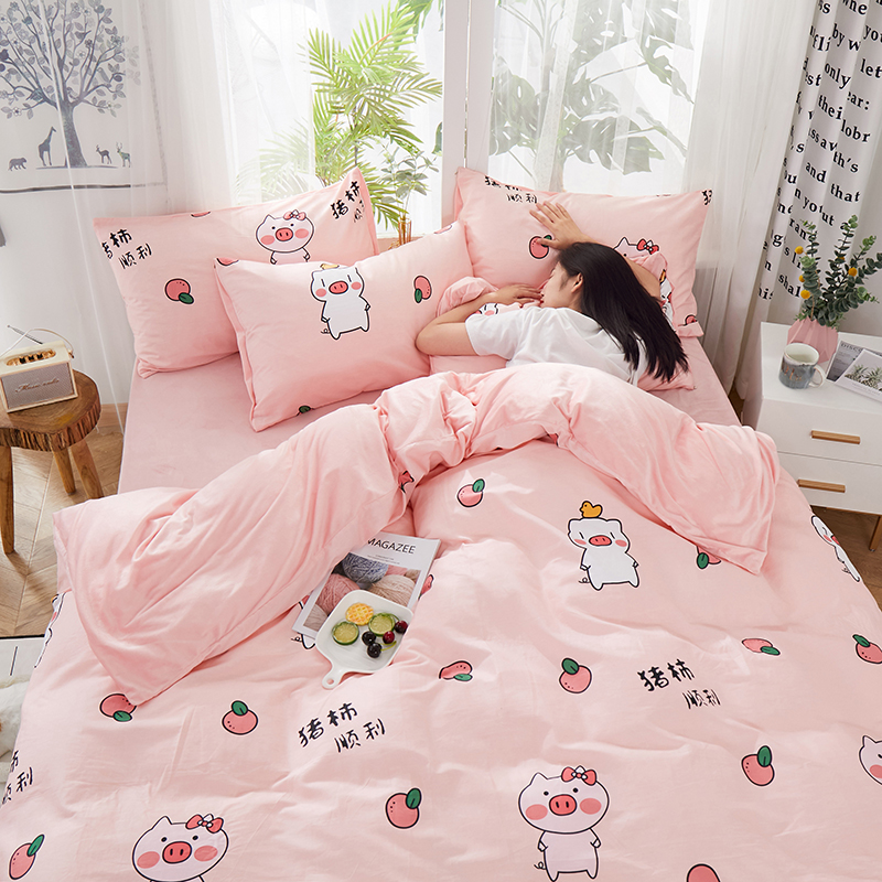 商品名称:一米阳光 2019新款A棉B纯色绒四件套 粉粉猪