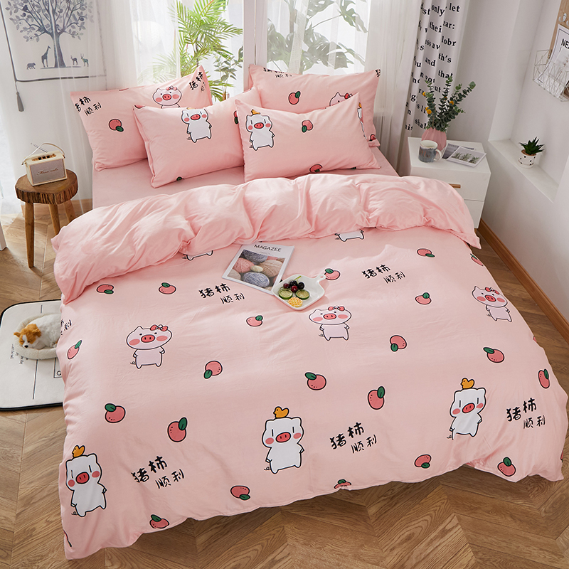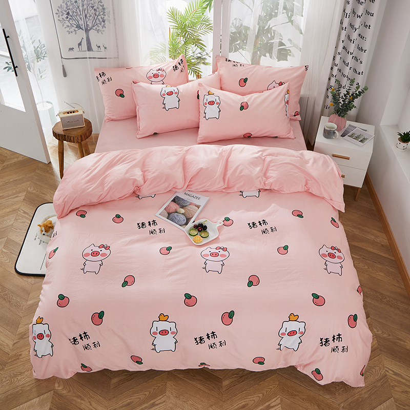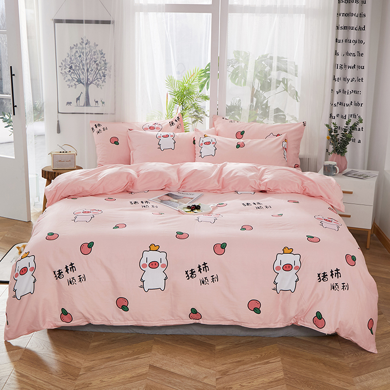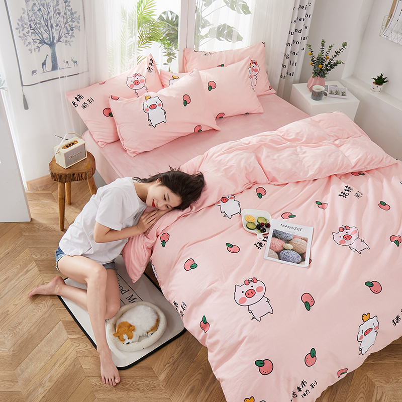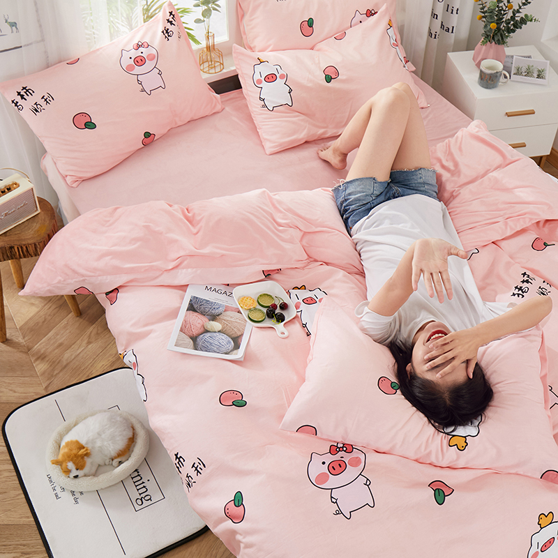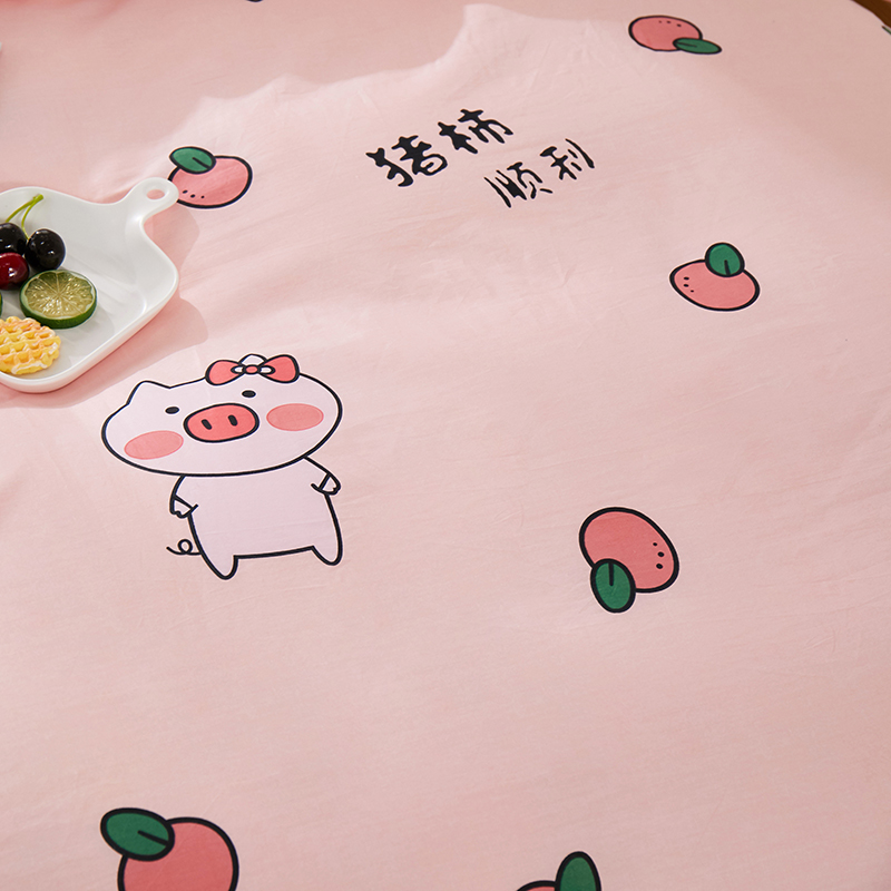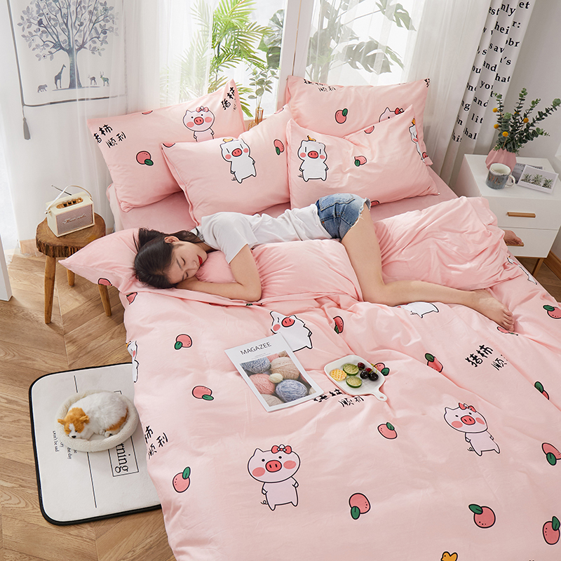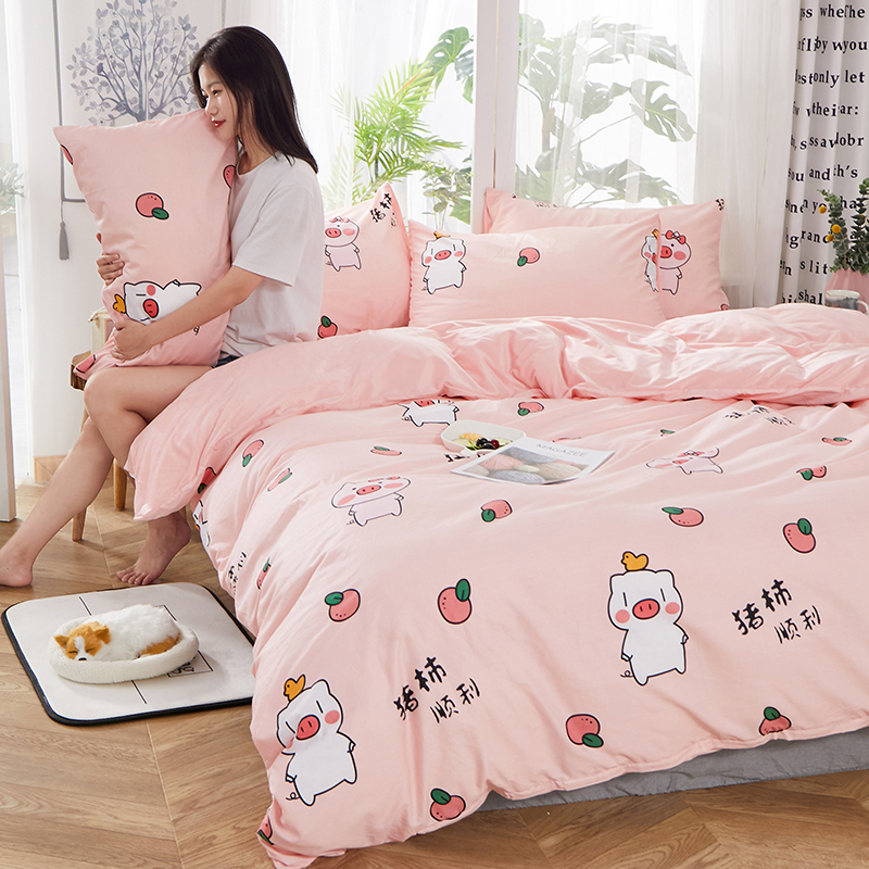 商品名称:一米阳光 2019新款A棉B纯色绒四件套 粉粉猪