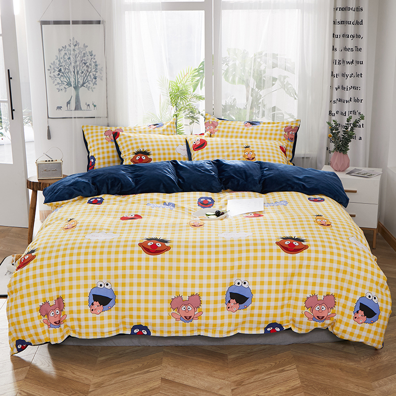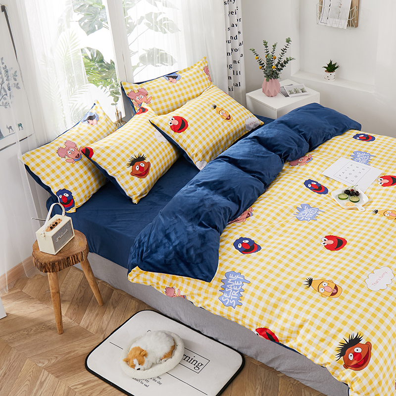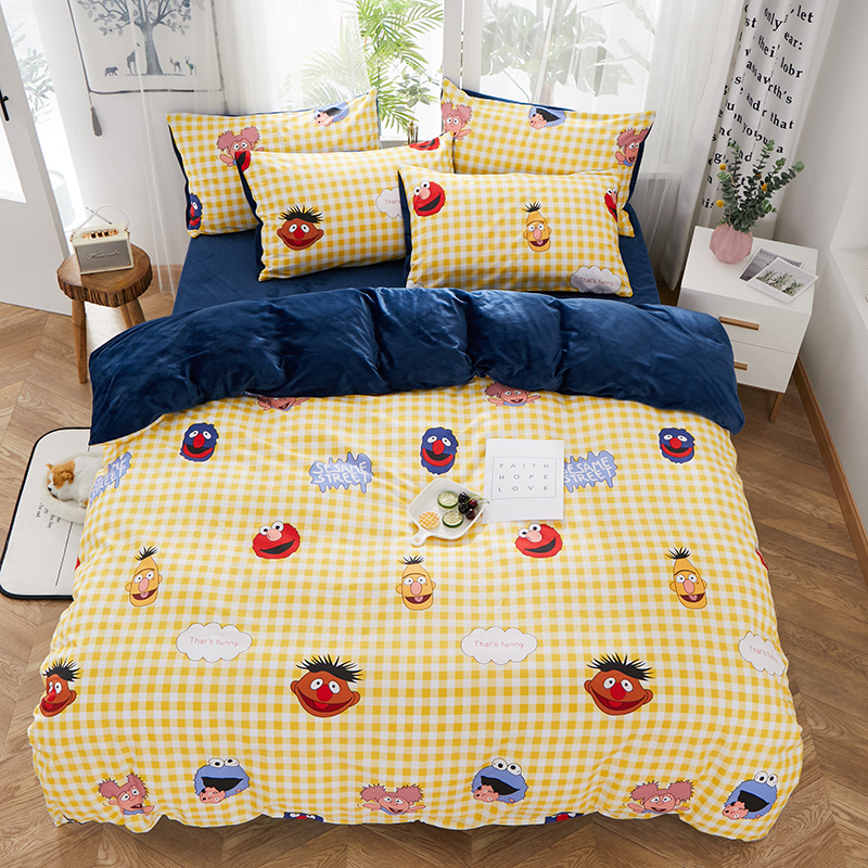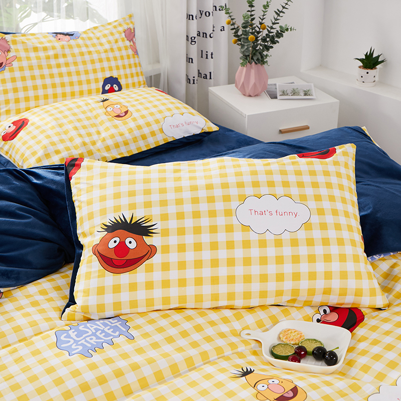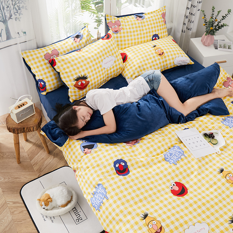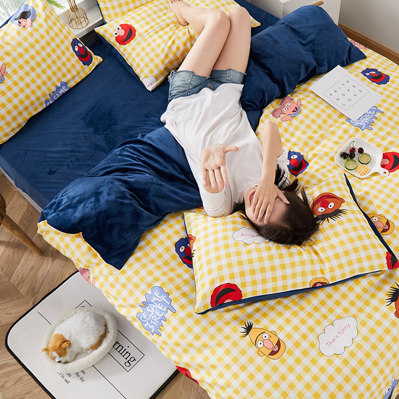 一米阳光 2019新款A棉B纯色绒四件套 芝麻街