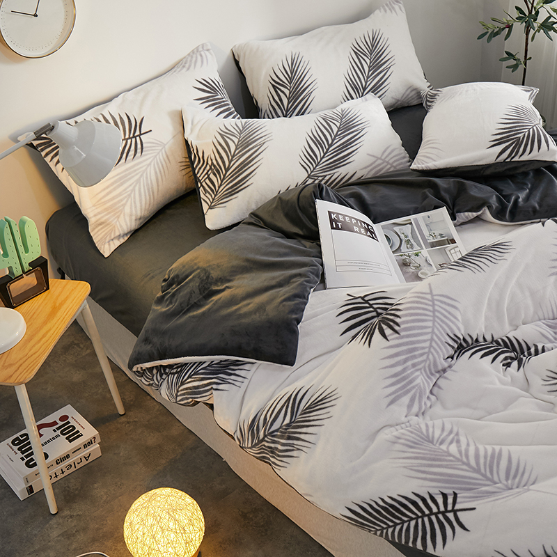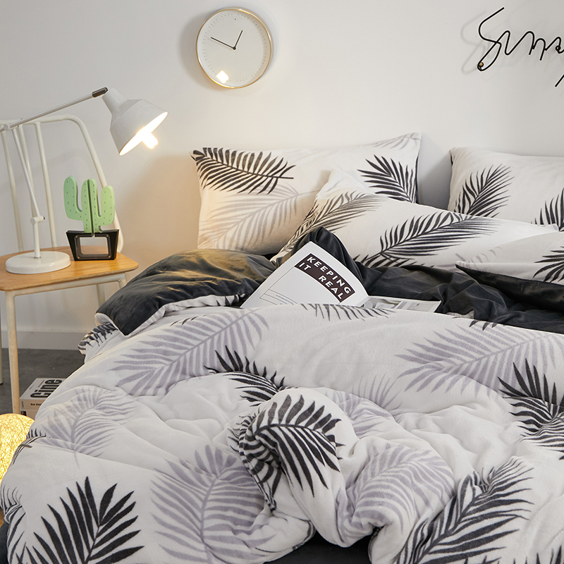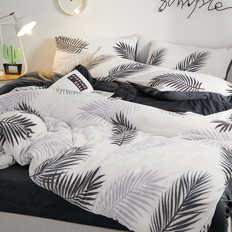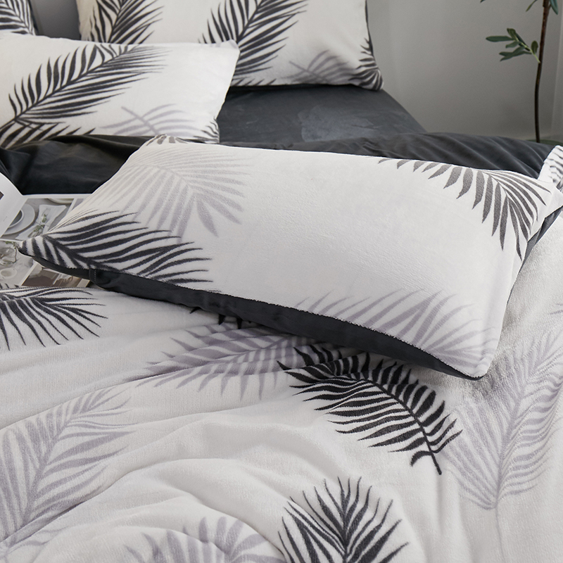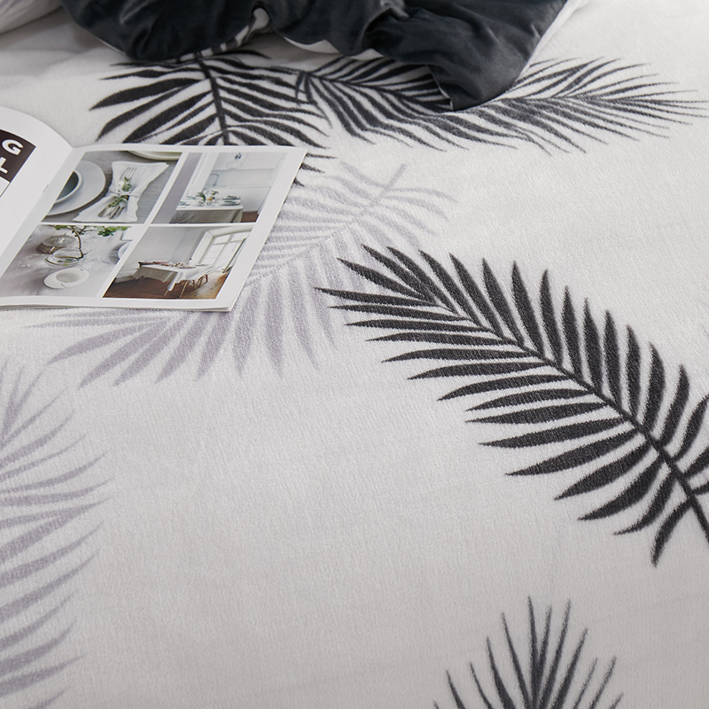 一米阳光 2019新款法莱绒四件套 羽叶