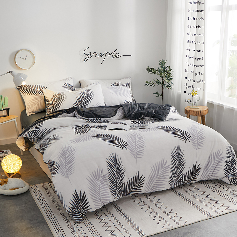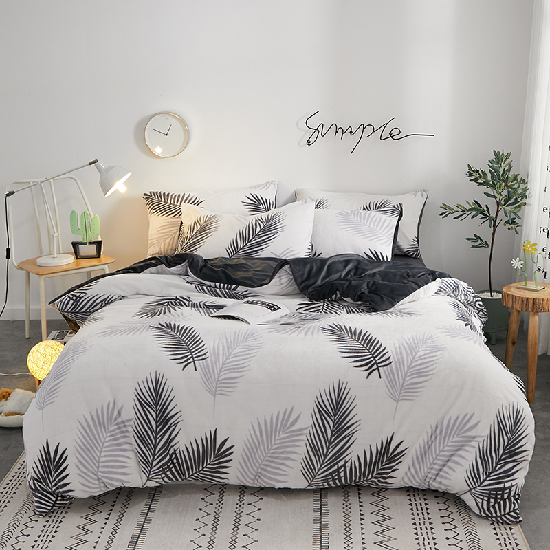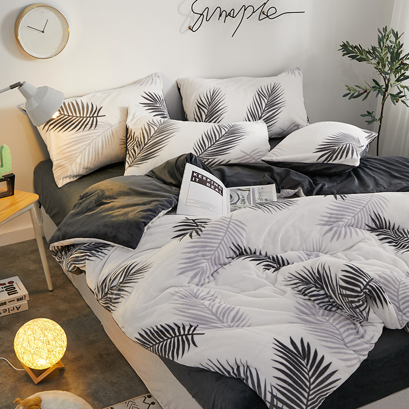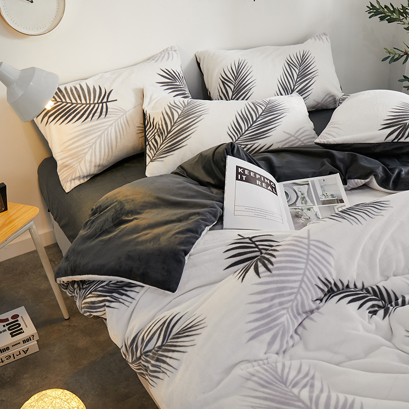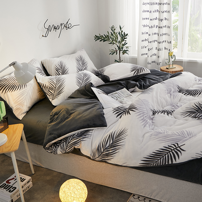 一米阳光 2019新款法莱绒四件套 羽叶