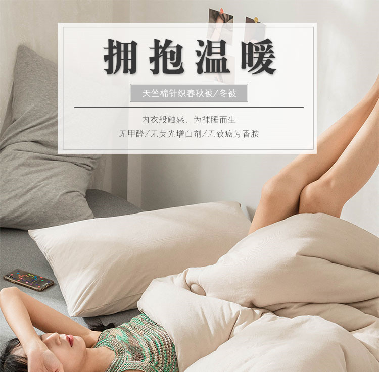 • 91家纺网 家纺一手货源 找家纺 寐眠 2021新款天竺棉针织棉春秋被冬被 针织纯色卡其