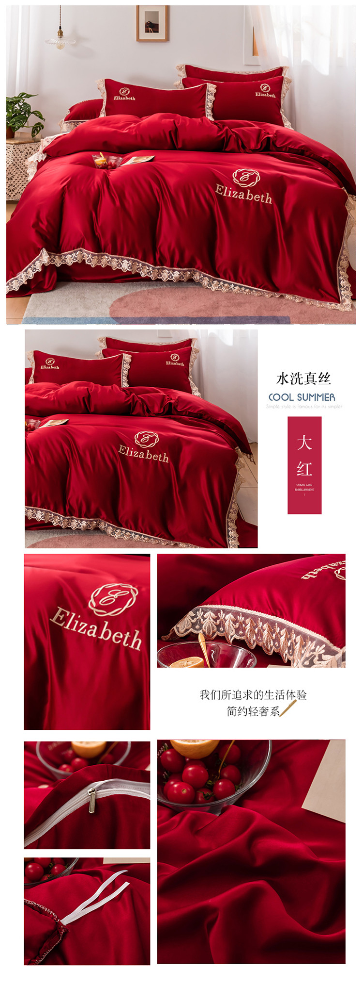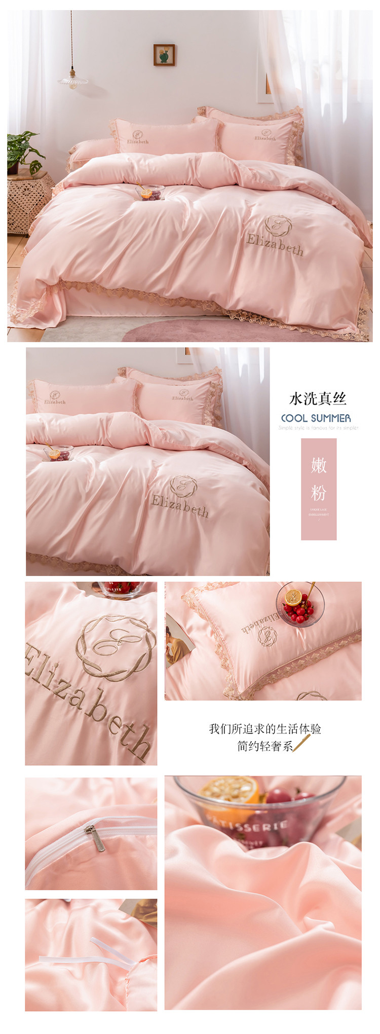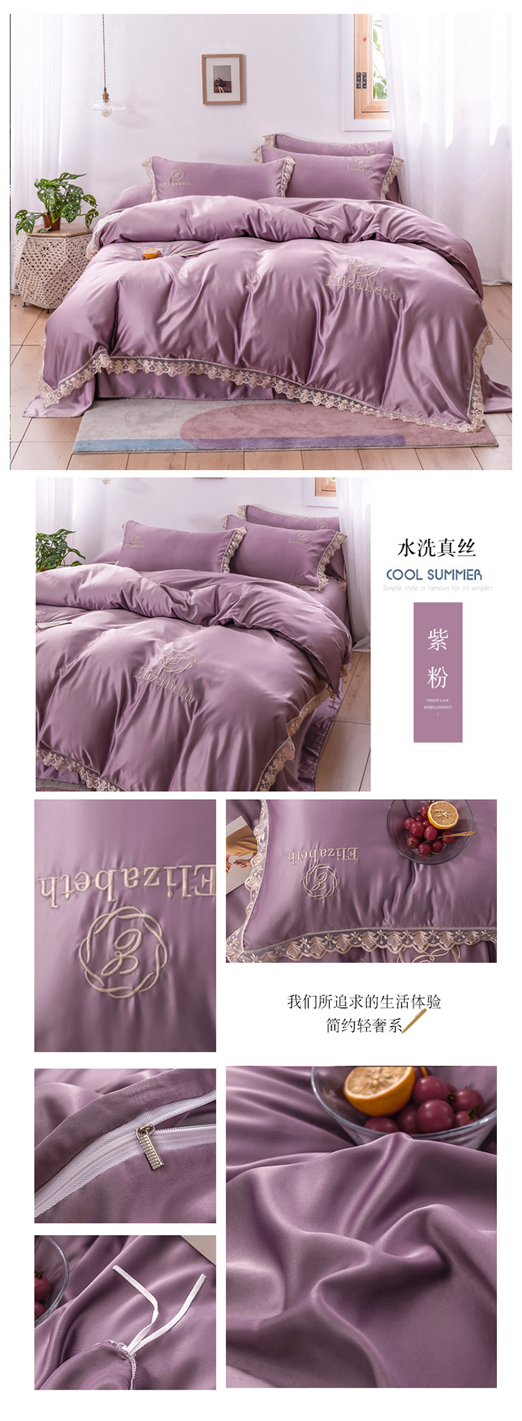 (总)米奈 2020新款水洗真丝蕾丝四件套