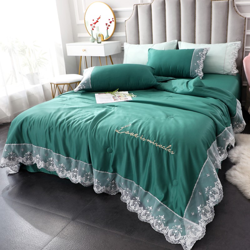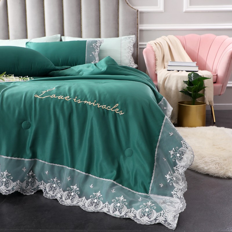 仟网汇 2020新款蕾丝奢华系列夏被四件套 墨绿