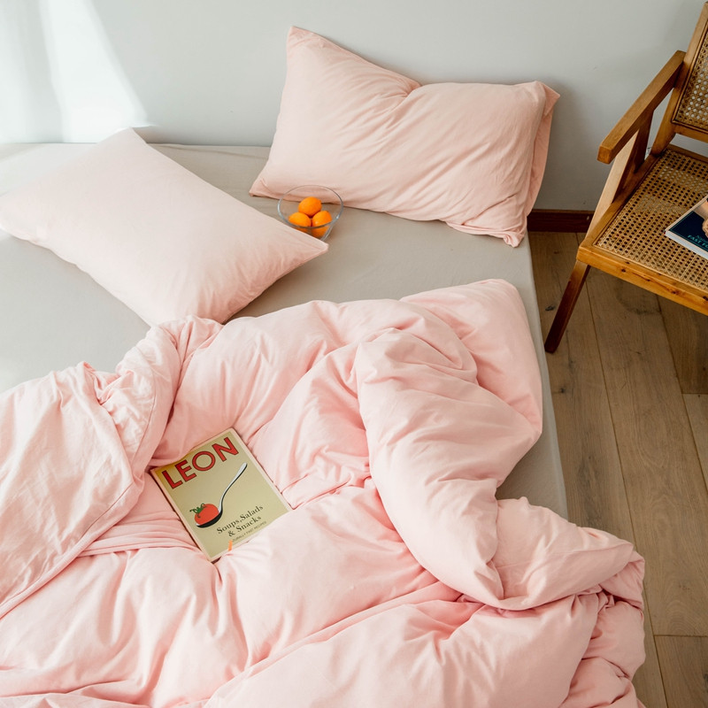 当前位置: 91家纺网 > 商品网购 > 床品套件 > 四件套 > 针织棉四件套 > 华超针织 2021新款针织纯色四件套 浅粉配杏色