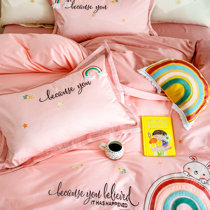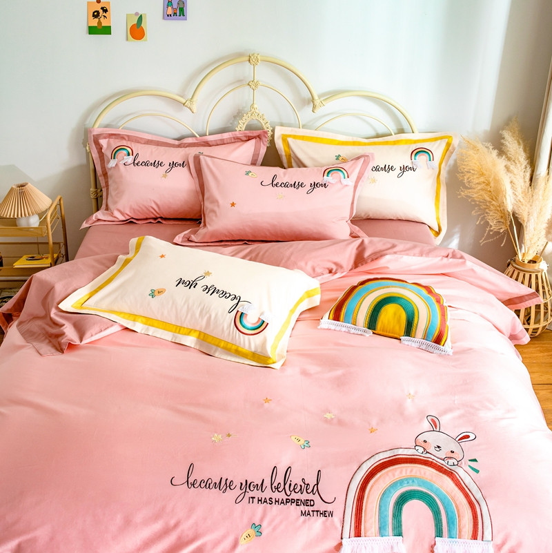 (总)柚子YOUTH 2025新款全棉A类母婴级卡通绣花四件套,吹泡泡,汉堡小猫,马上有钱,女孩的礼物,小狗面包,月亮船