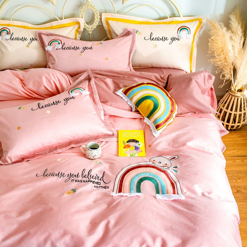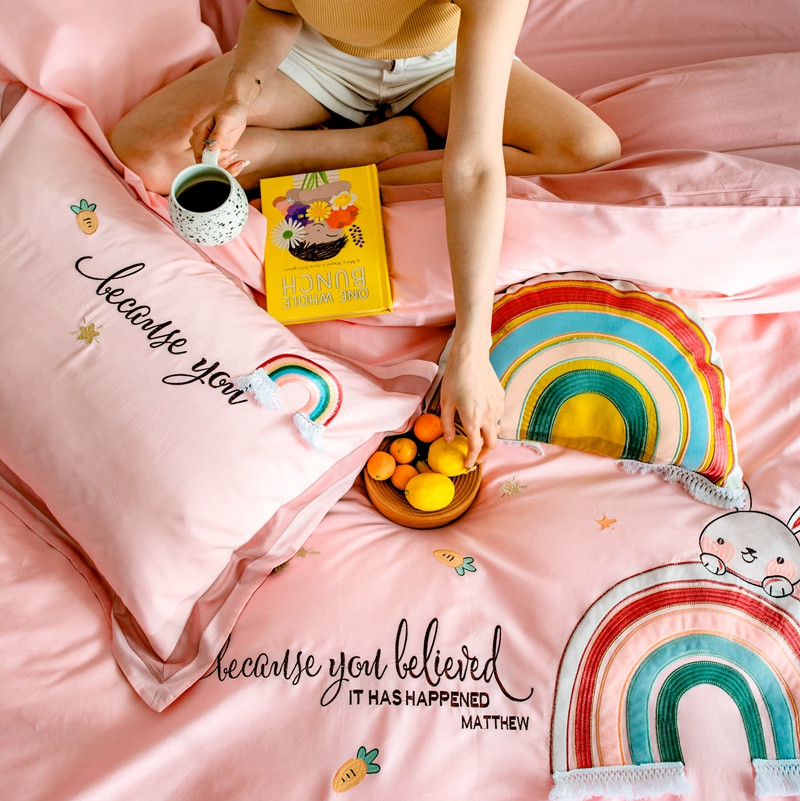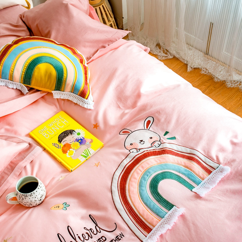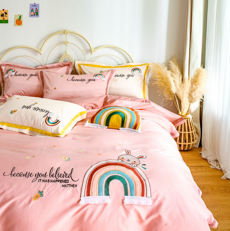 (总)柚子YOUTH 2025新款全棉纯棉工艺款13070贴布绣四件套,爱心小象,毛绒小狗,蘑菇女孩,星星法师