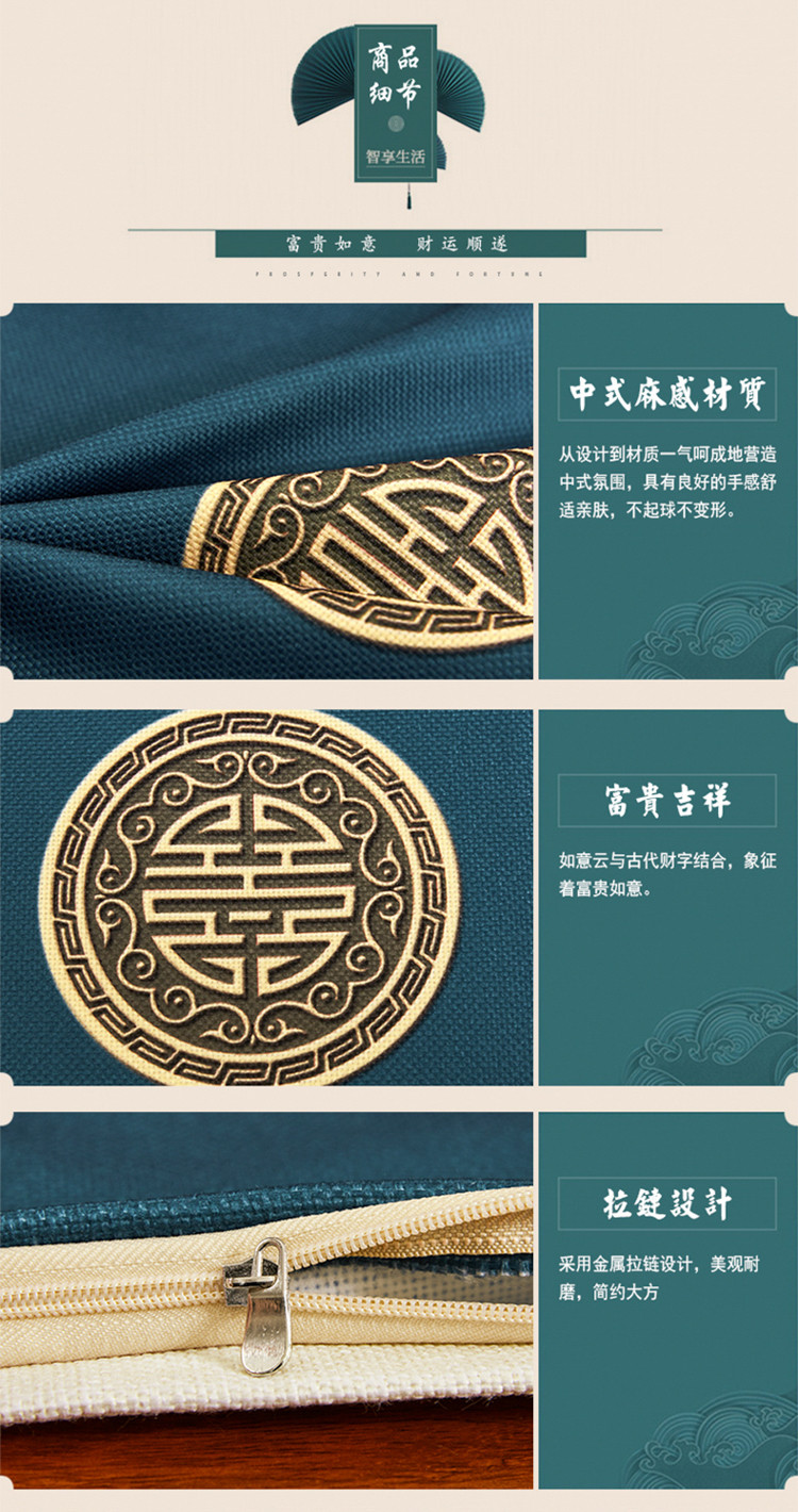 商品名称:北辰 2020新款麻布印花新中式抱枕 福禄-米色