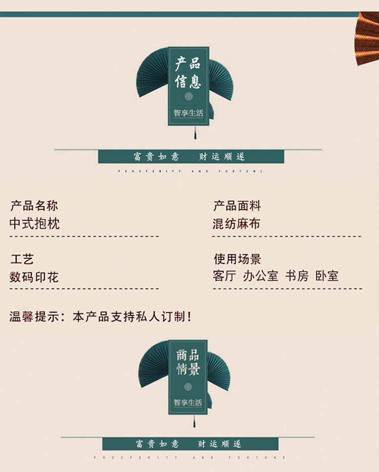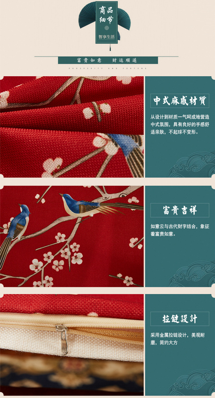 商品名称:北辰 2020新款麻布印花新中式抱枕 玉兰花开