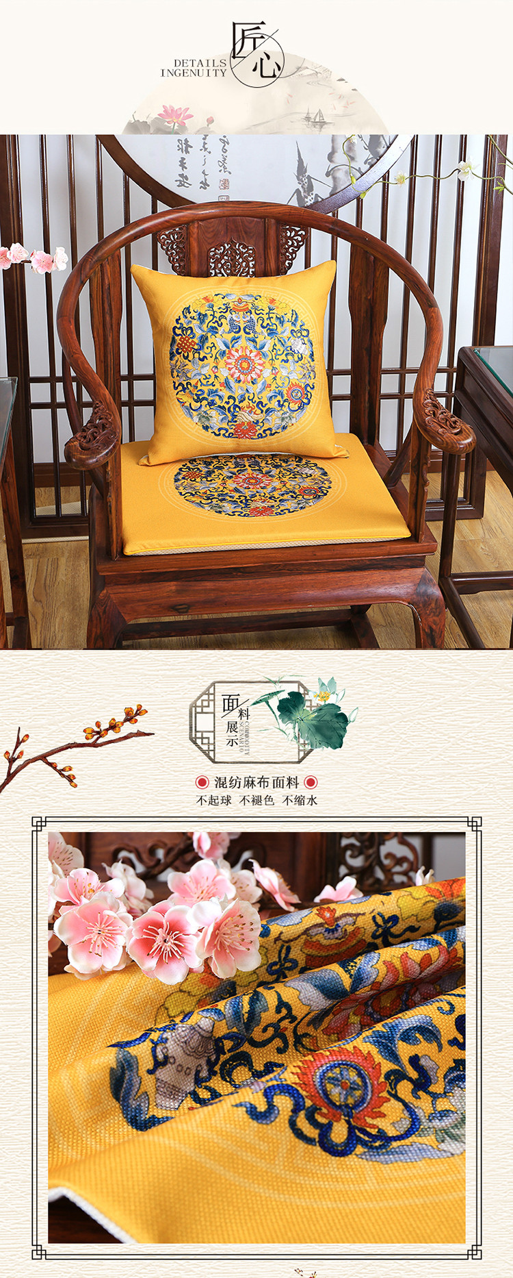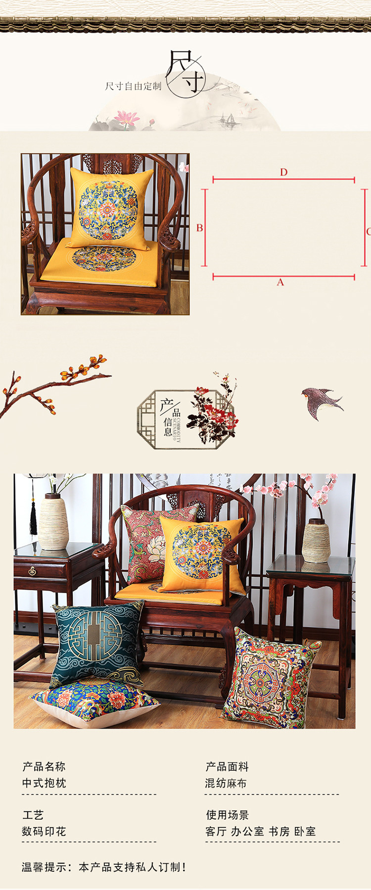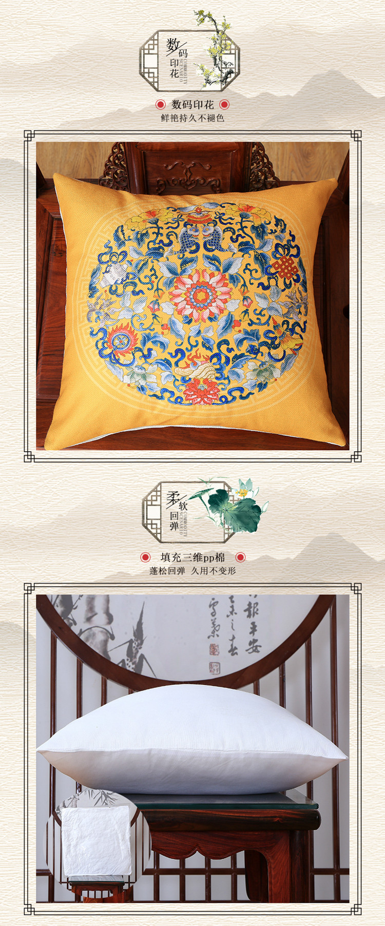 商品名称:北辰 2020新款麻布印花新中式抱枕 中式-兰福