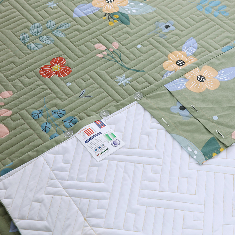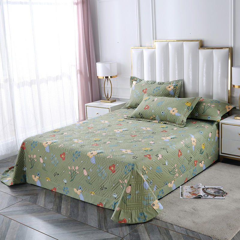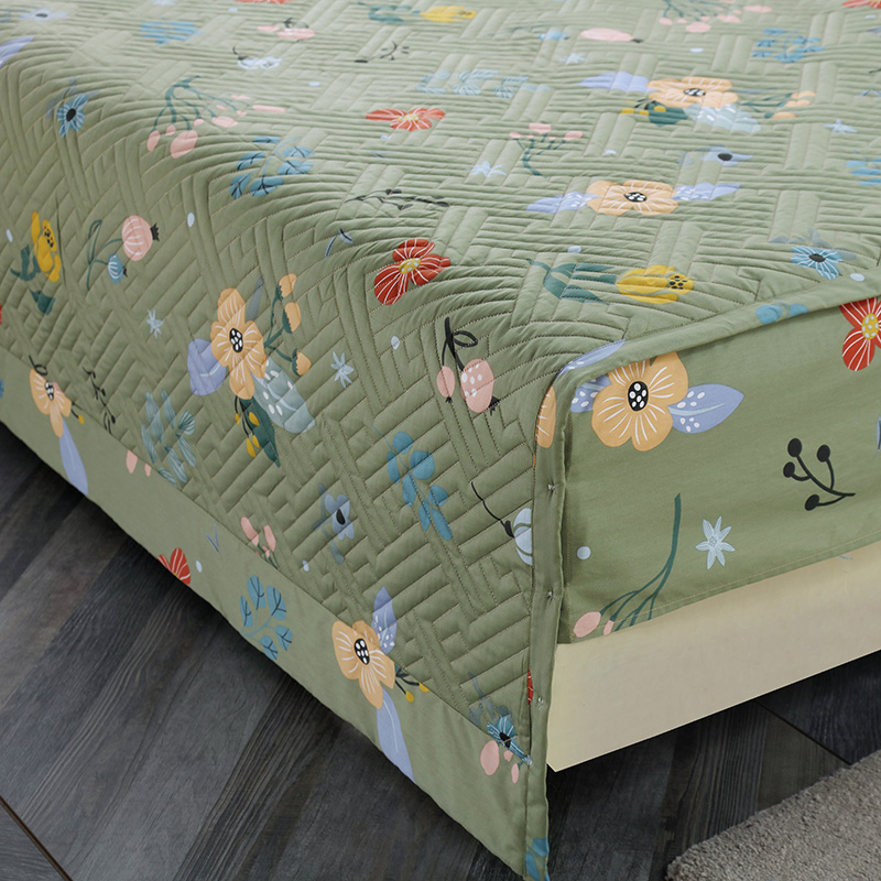 商品名称:OL 2021新款13372全棉夹棉活性印染单品床盖 花蕾-绿