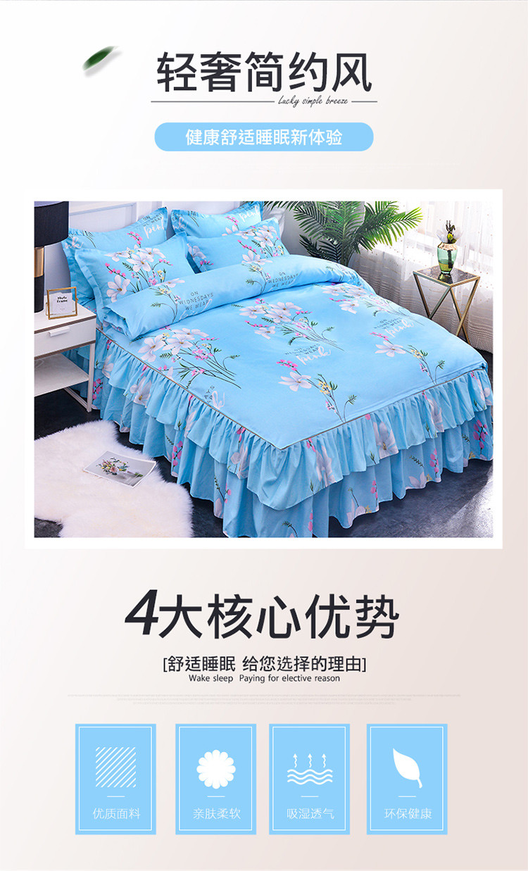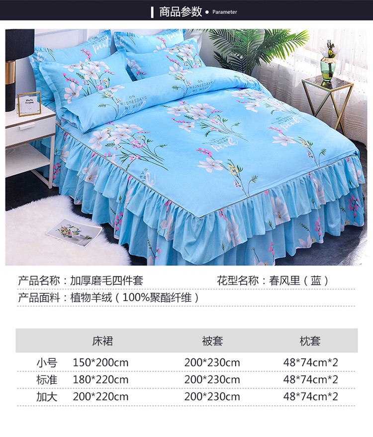 商品名称:梦柏 2020新款加厚磨毛四件套小版 春风里-蓝