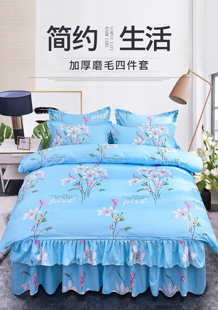 梦柏 2020新款加厚磨毛四件套小版 春风里-蓝