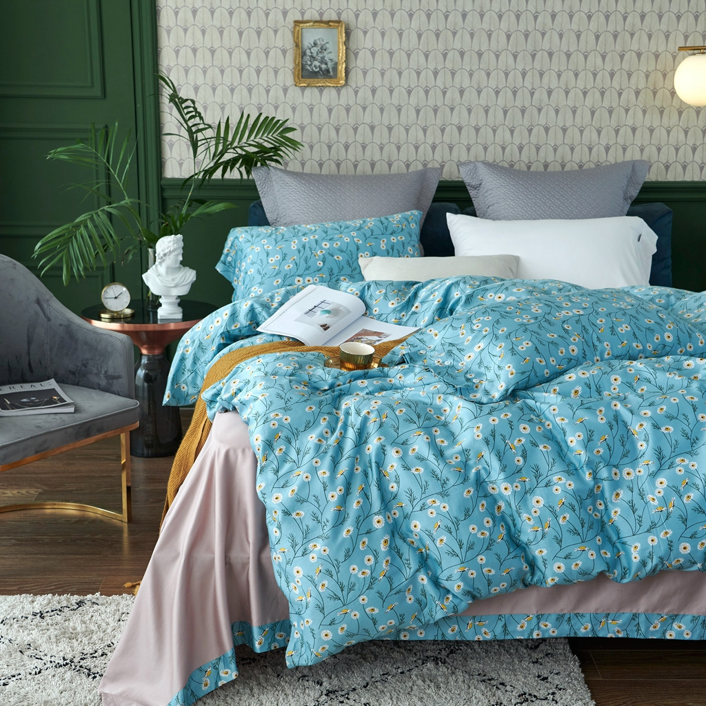 商品名称:优然居2020新款60S长绒棉活性印花四件套 卡贝尔蓝
