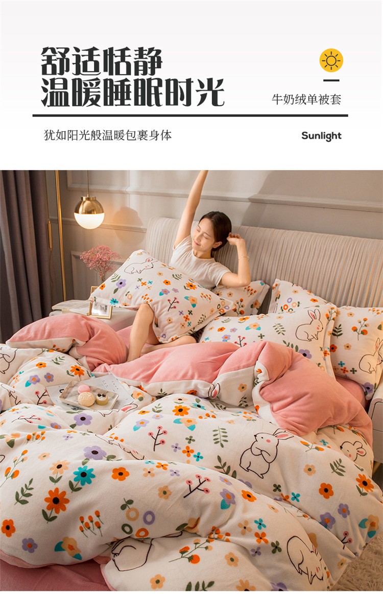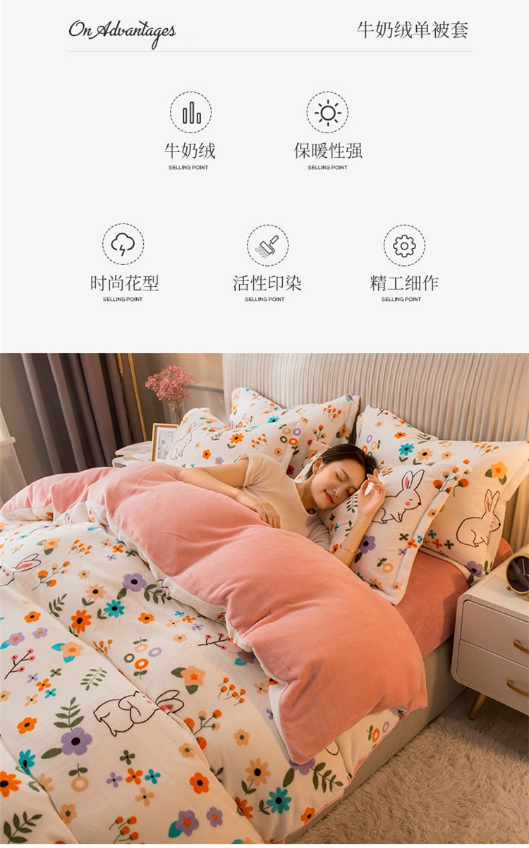 商品名称:寐居 2020新款印花牛奶绒单被套 花骨朵
