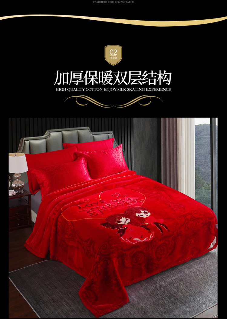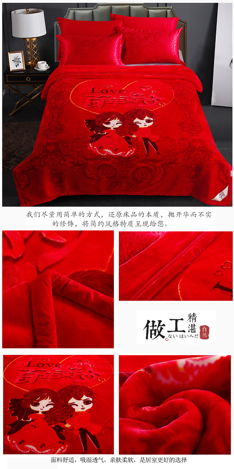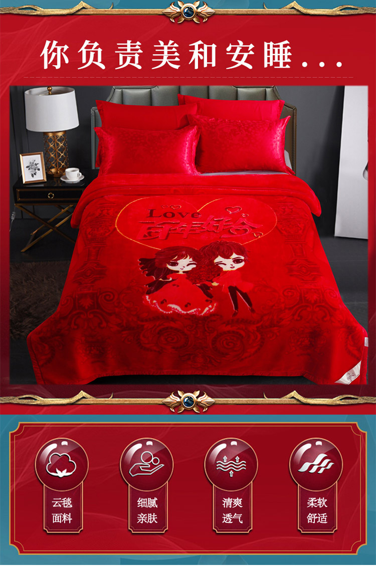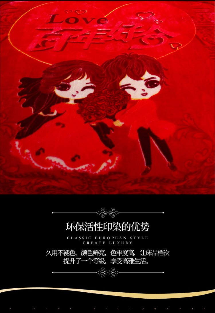 商品名称:好艺佳 婚庆系列云毯 百年好合-大红