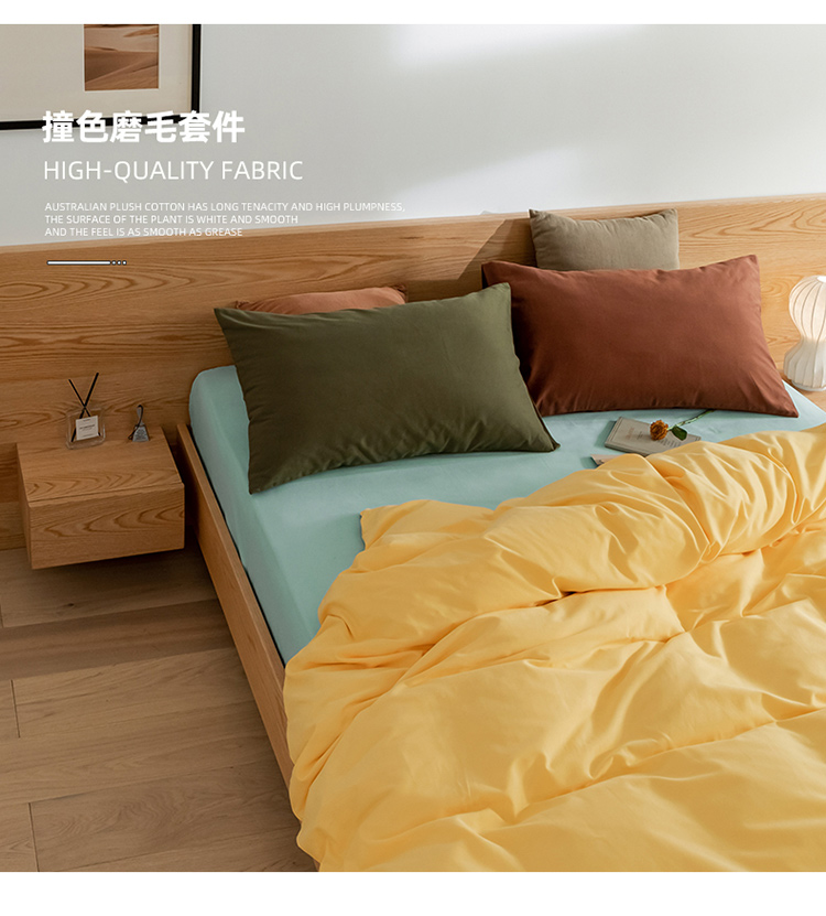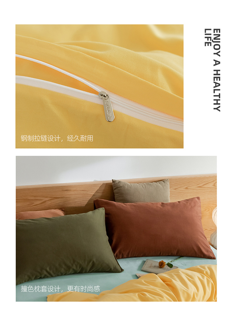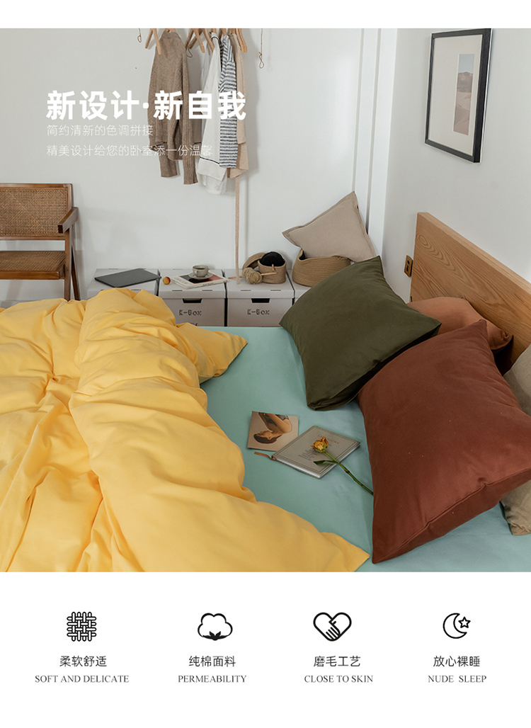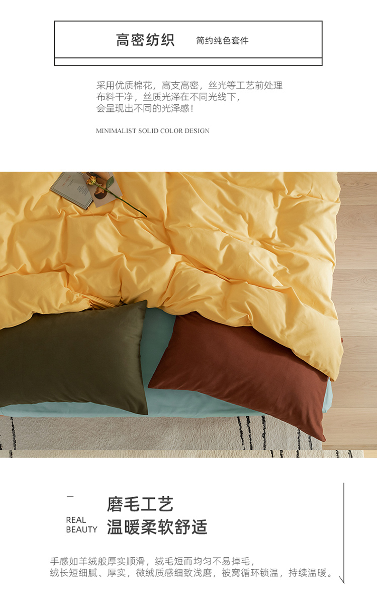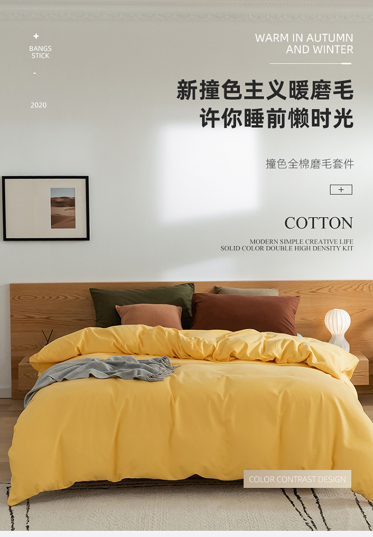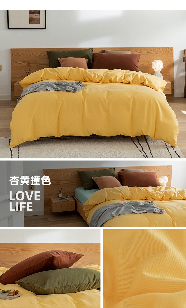 当前位置: 91家纺网 > 商品网购 > 床品套件 > 四件套 > 普通磨毛四件套 > 窝米 2020新款40s纯色磨毛四件套撞色系列 杏黄