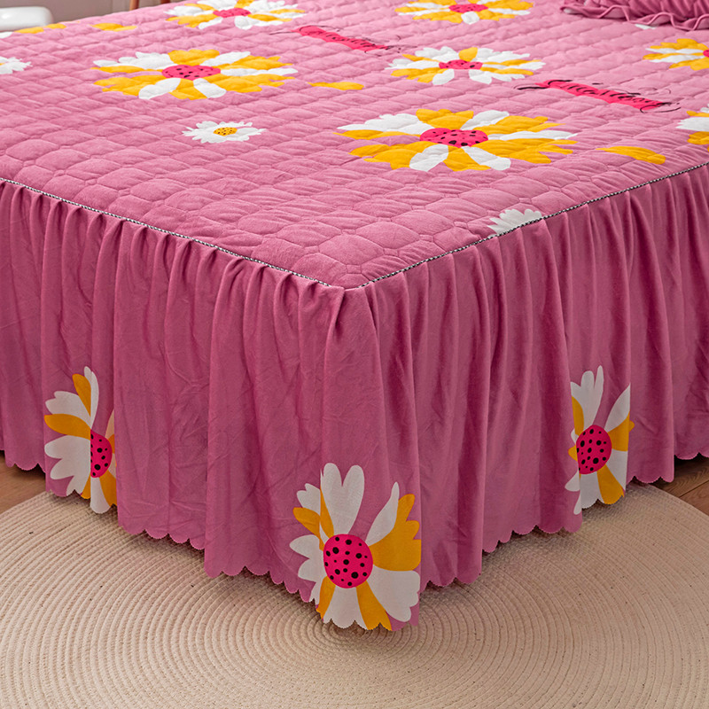 纽缦 2020新款绒夹棉床裙 大雏菊豆沙