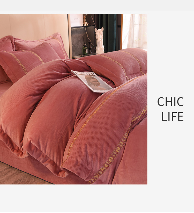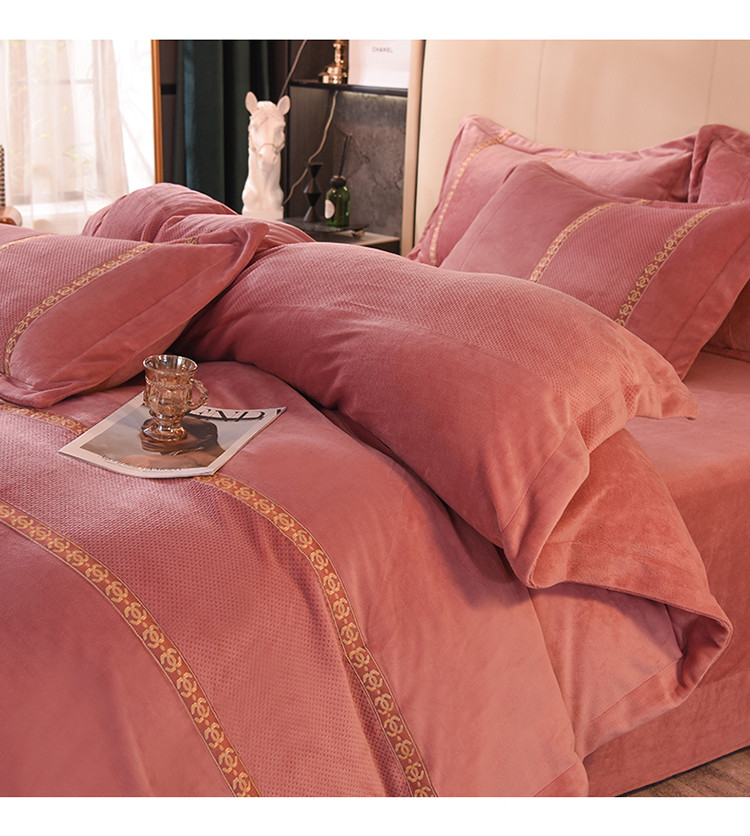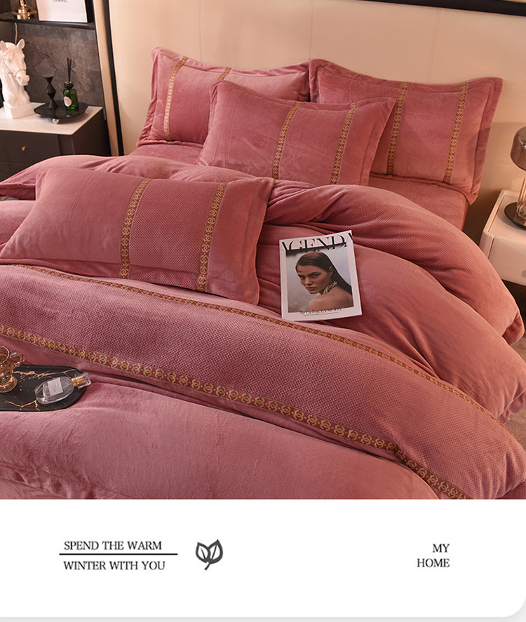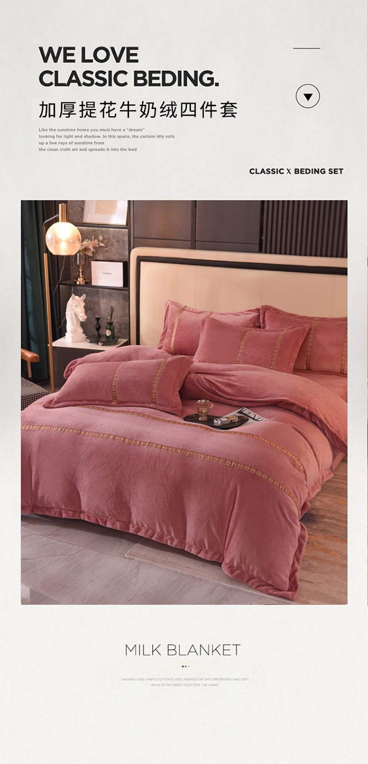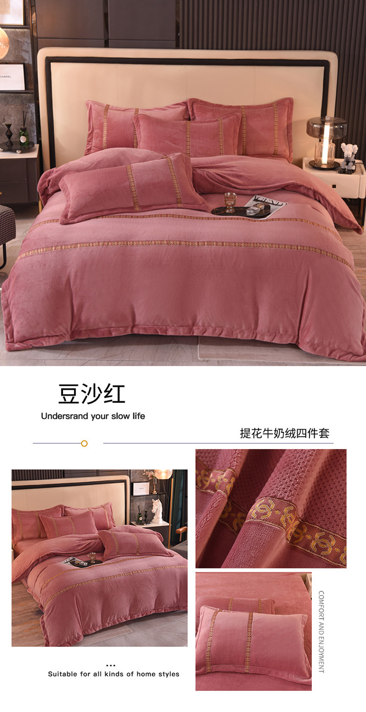 七七 2025新款保暖加厚提花牛奶绒四件套 寐语-豆沙红