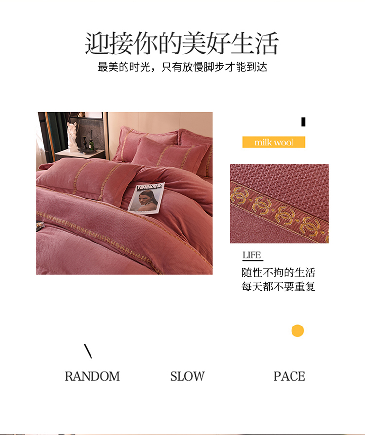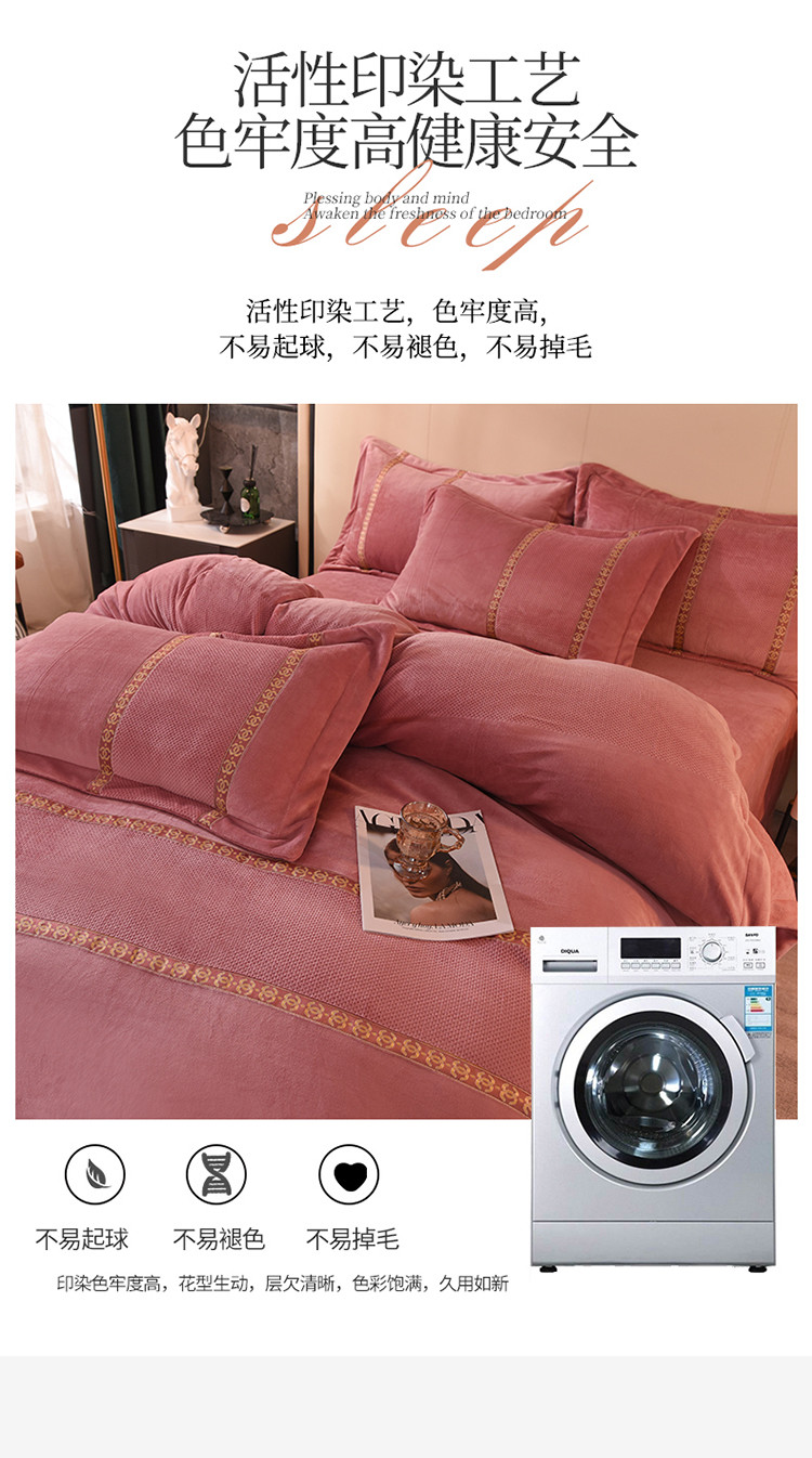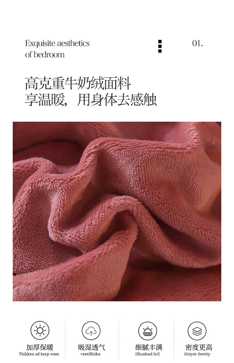 商品名称:七七 2025新款保暖加厚提花牛奶绒四件套 寐语-豆沙红
