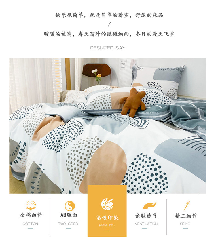 (总)感遇家纺 2021新款春夏新品全棉四件套纯棉三件套,AB熊,小情调-灰,小情调-桔,小情调-蓝,英伦熊-灰,律动,迷你熊