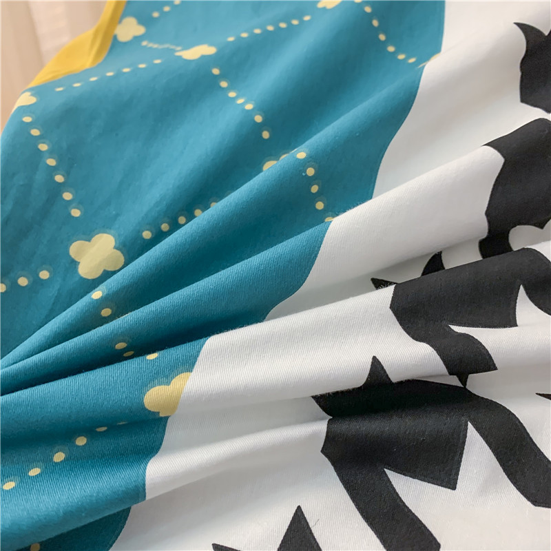 (总)感遇家纺 2022新款全棉印花四件套,格子小花,黑格恐龙,蓝色心情,浅暖
