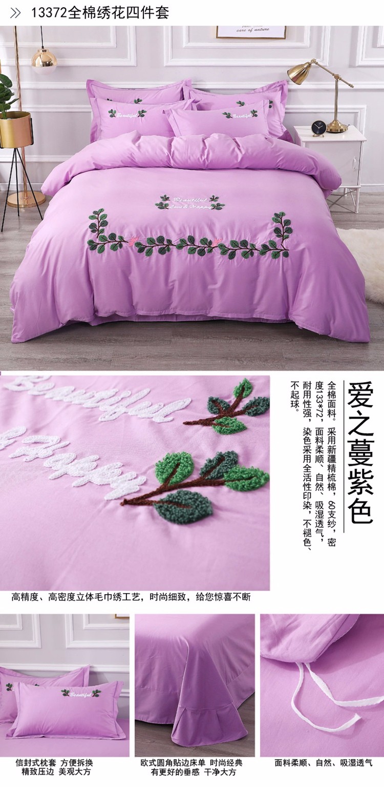 商品名称:2021新款全棉13372毛巾绣纯棉刺绣花四件套 爱之蔓紫色