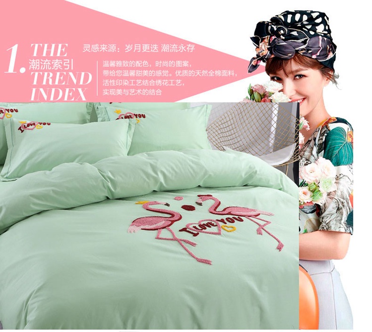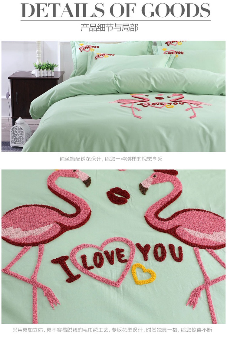 商品名称:2021新款全棉13372毛巾绣纯棉刺绣花四件套幸福烈鸟绿色