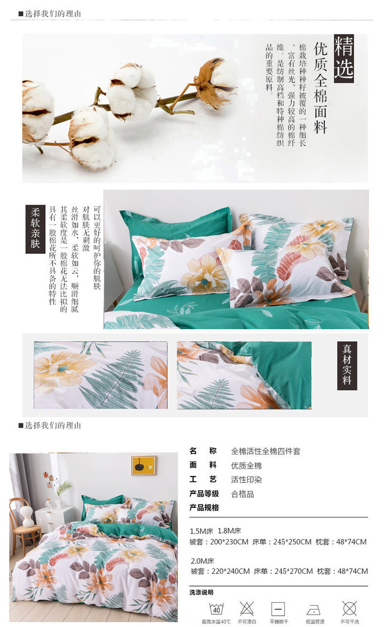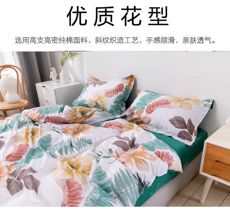 商品名称:星期三 2021新款花卉系列全棉13372四件套(加老板微信有会员价) 浮游花开