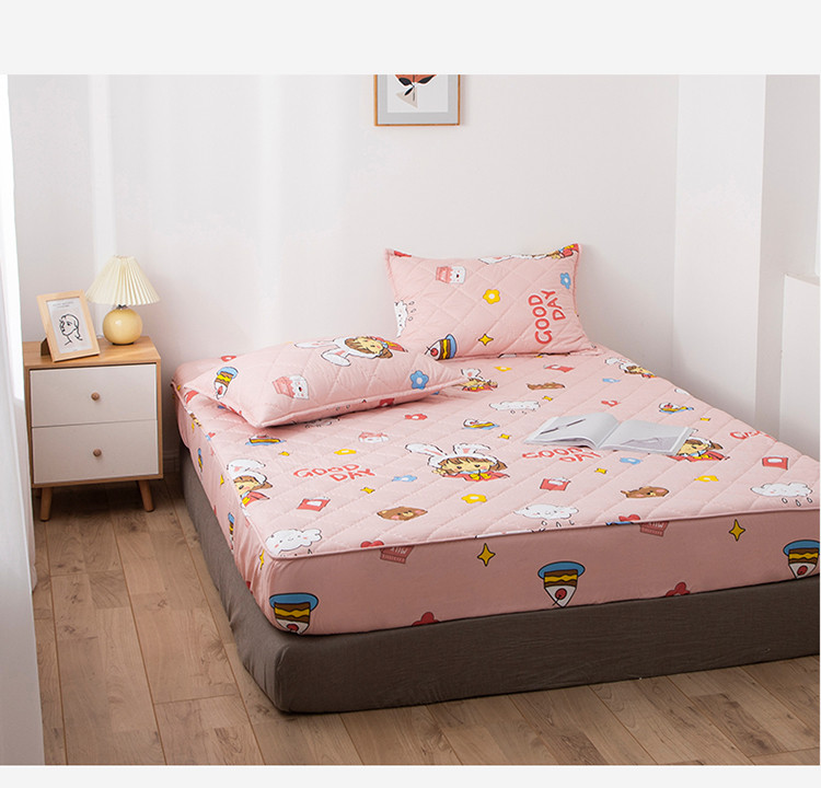 小米笠 2021新款亲肤磨毛夹棉床笠 粉兔女孩