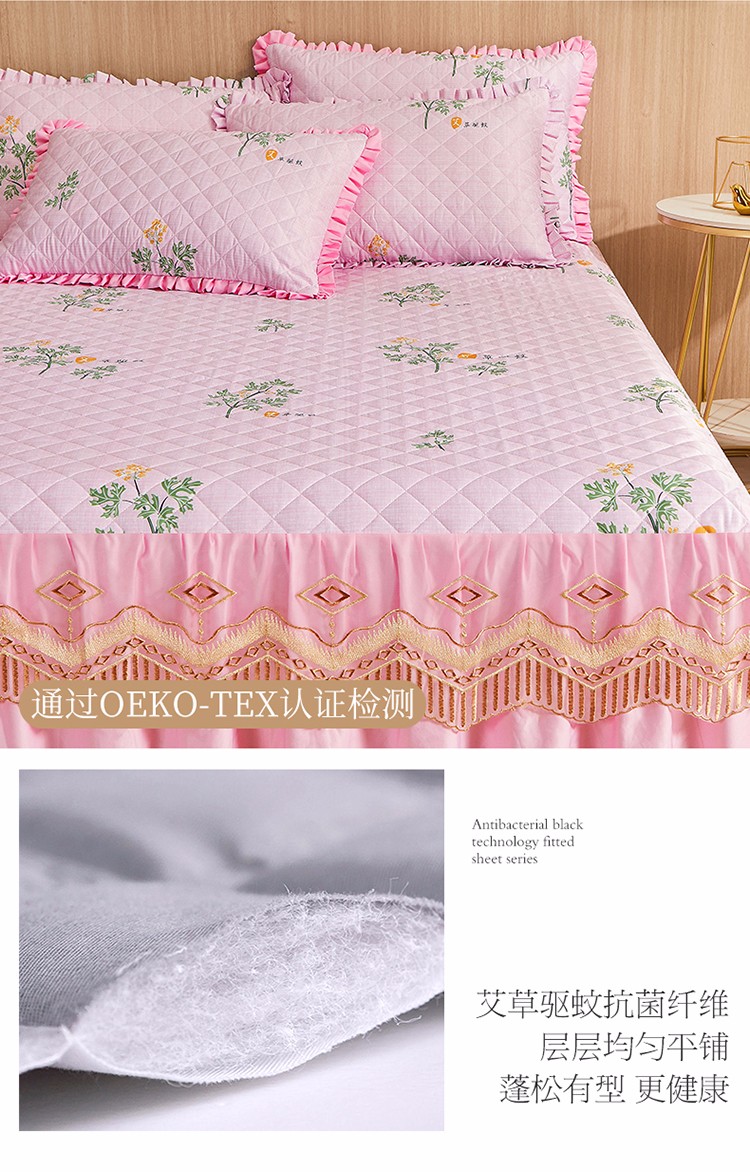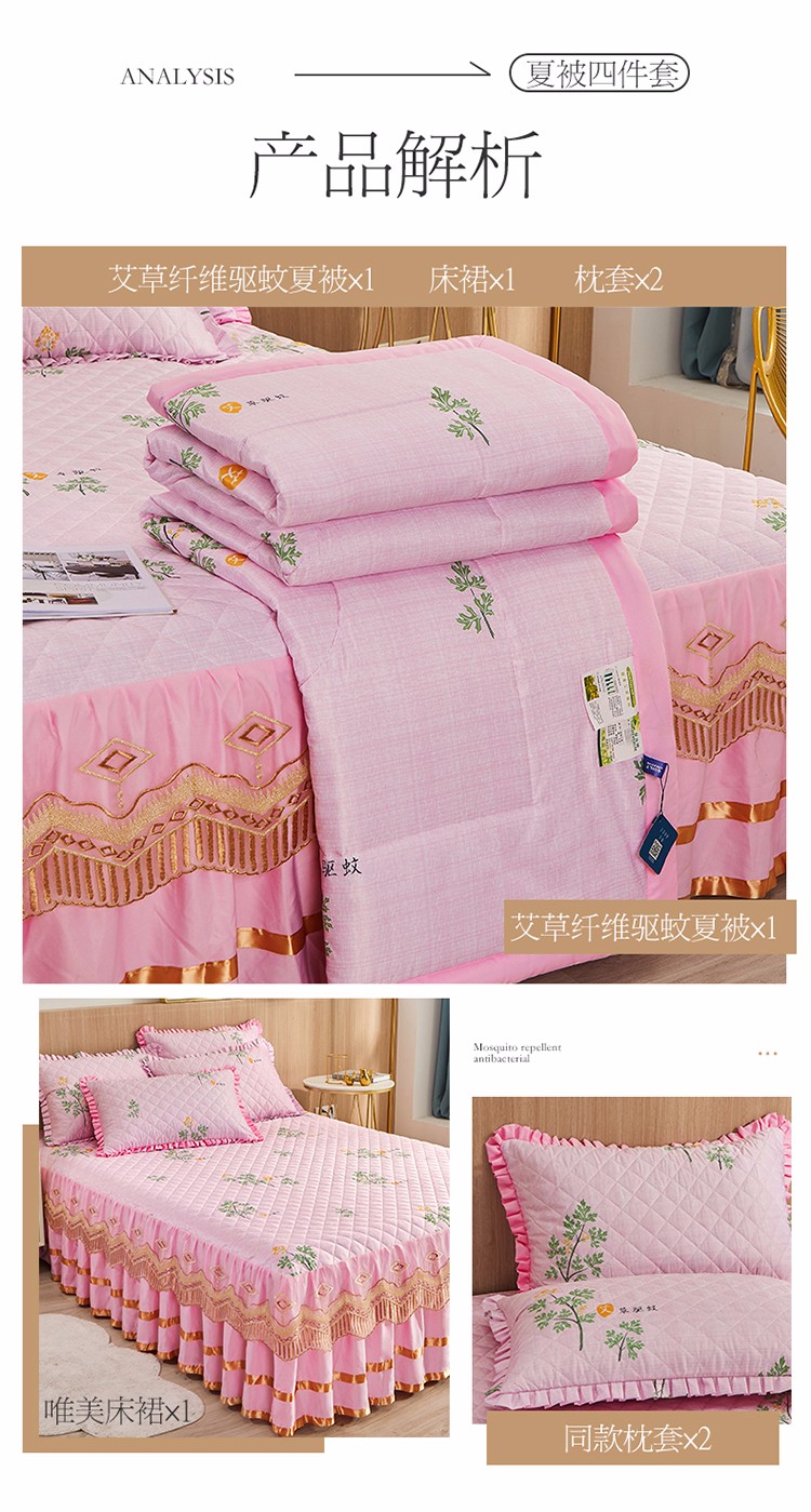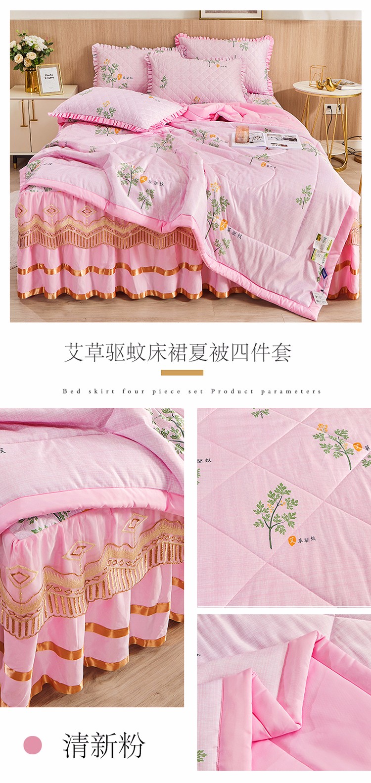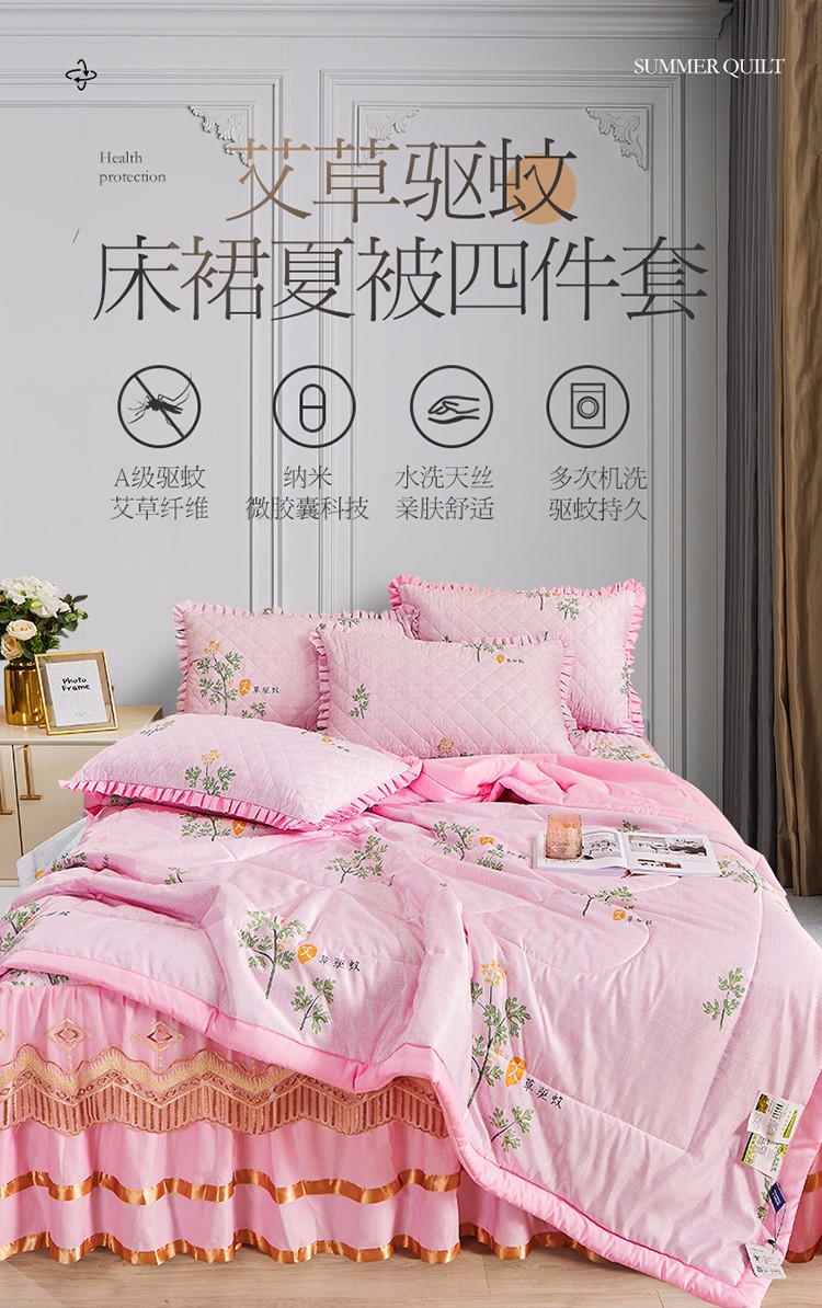 情恒家纺 2025新款艾草驱蚊抗菌床裙夏被四件套 清新粉