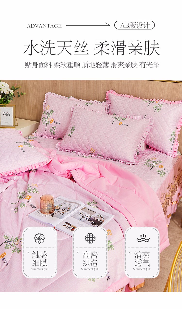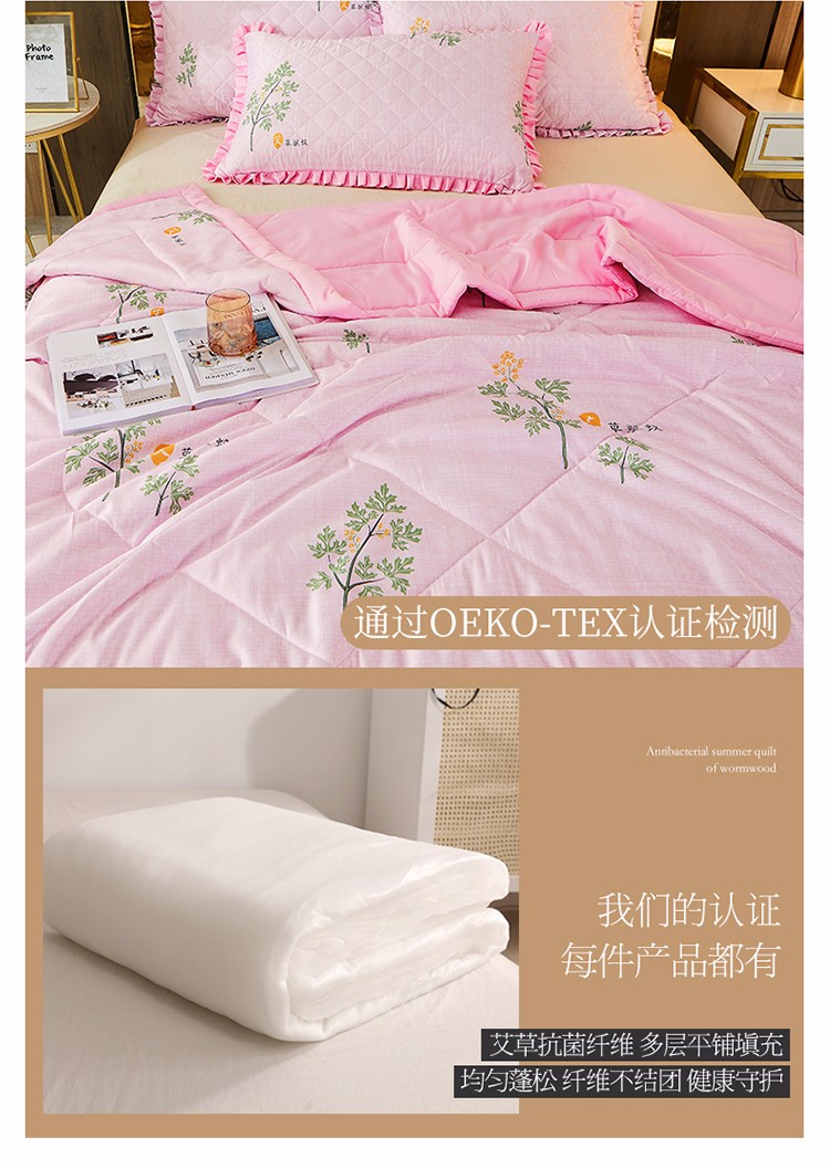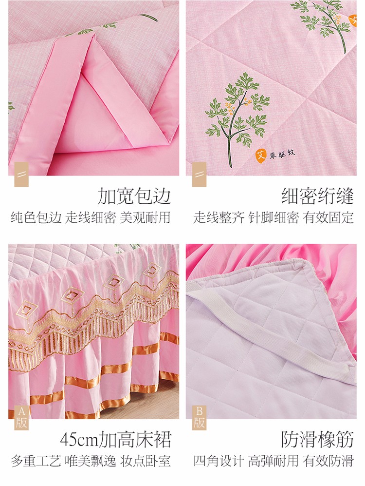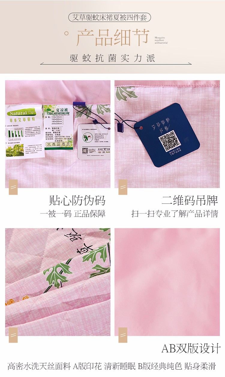 当前位置: 91家纺网 > 商品网购 > 被子 > 夏被 > 情恒家纺 2025新款艾草驱蚊抗菌床裙夏被四件套 清新粉