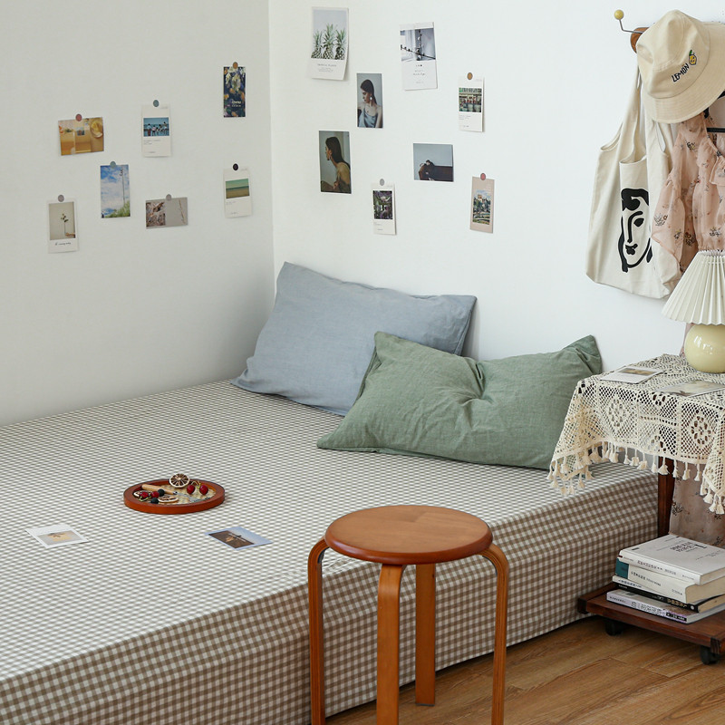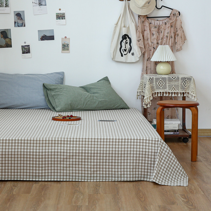 安莱生活 2021新款色织全棉水洗棉单床单 米小格