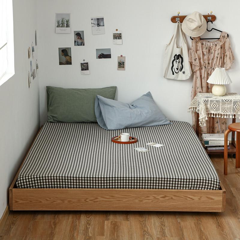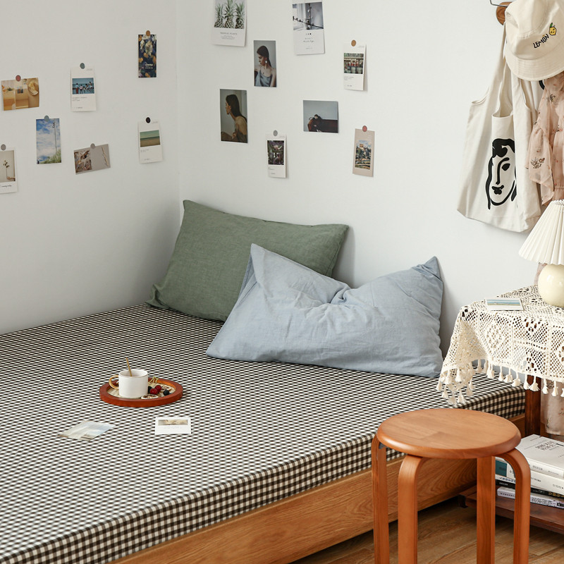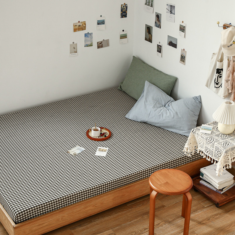 安莱生活 2021新款色织全棉水洗棉单床笠 黑小格
