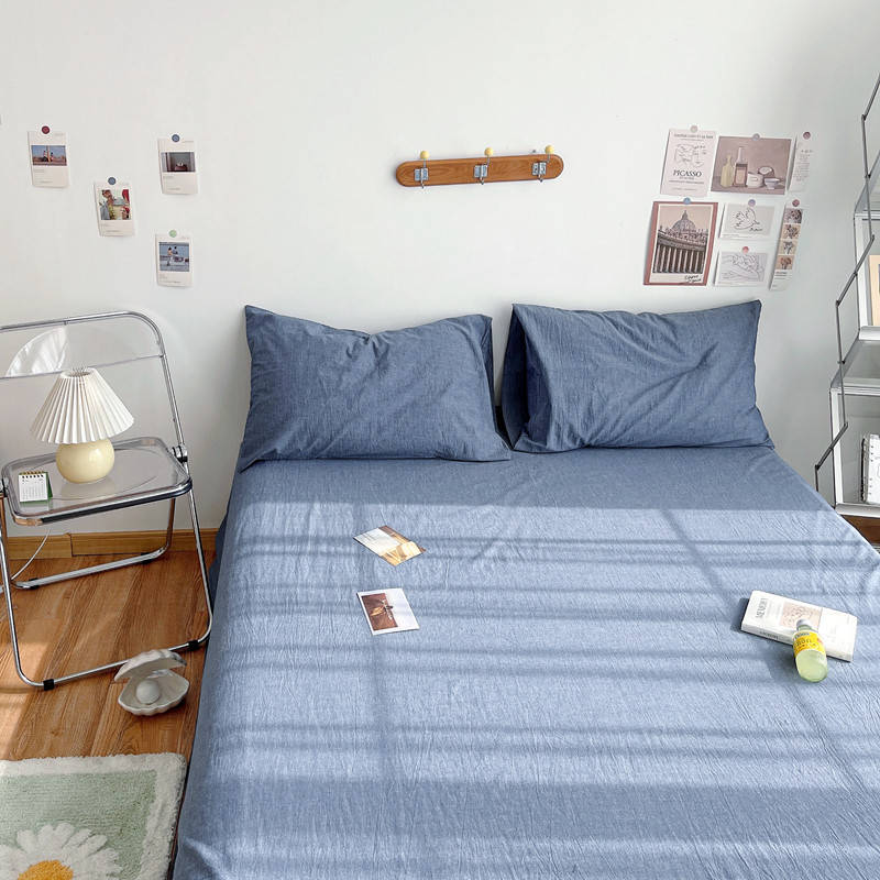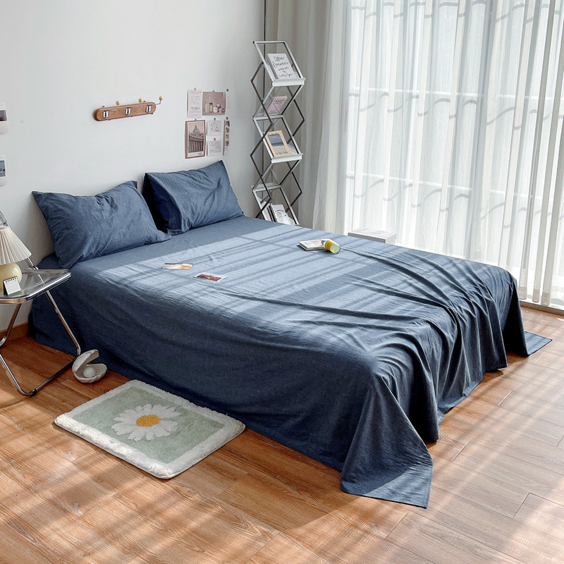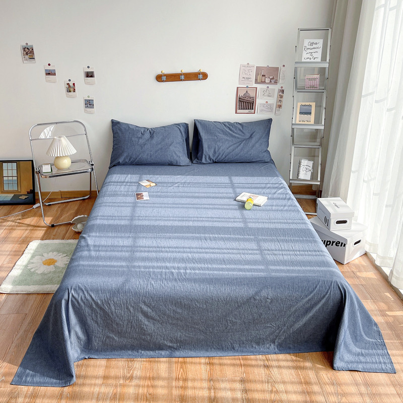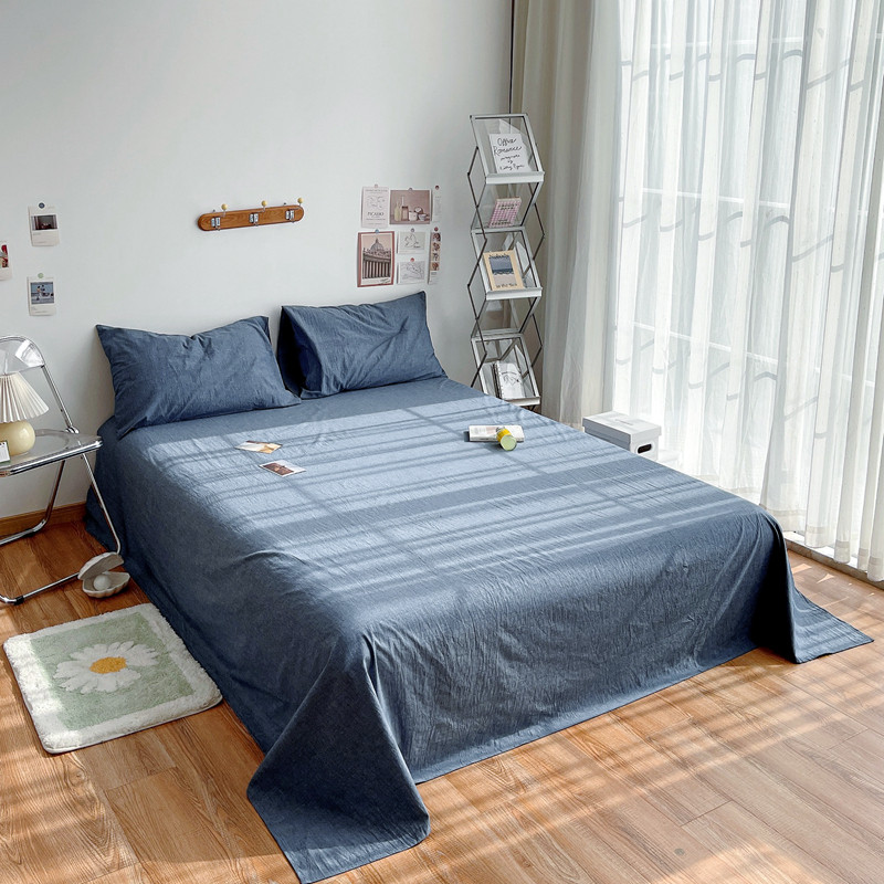 安莱生活 2021新款全棉水洗棉单床单 牛仔蓝
