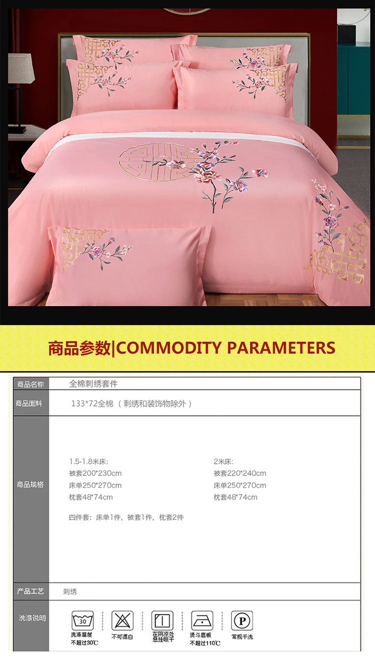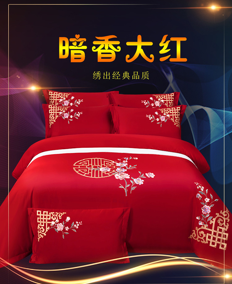 商品名称:(总)婚庆四件套大红色刺绣花全棉纯棉结婚八色床上用品 暗香