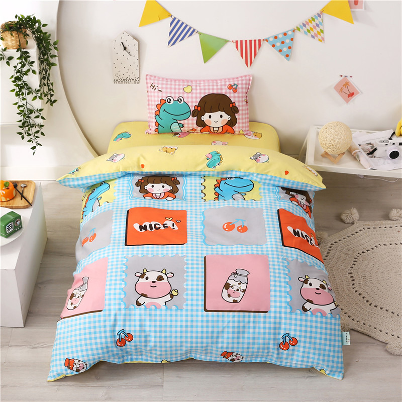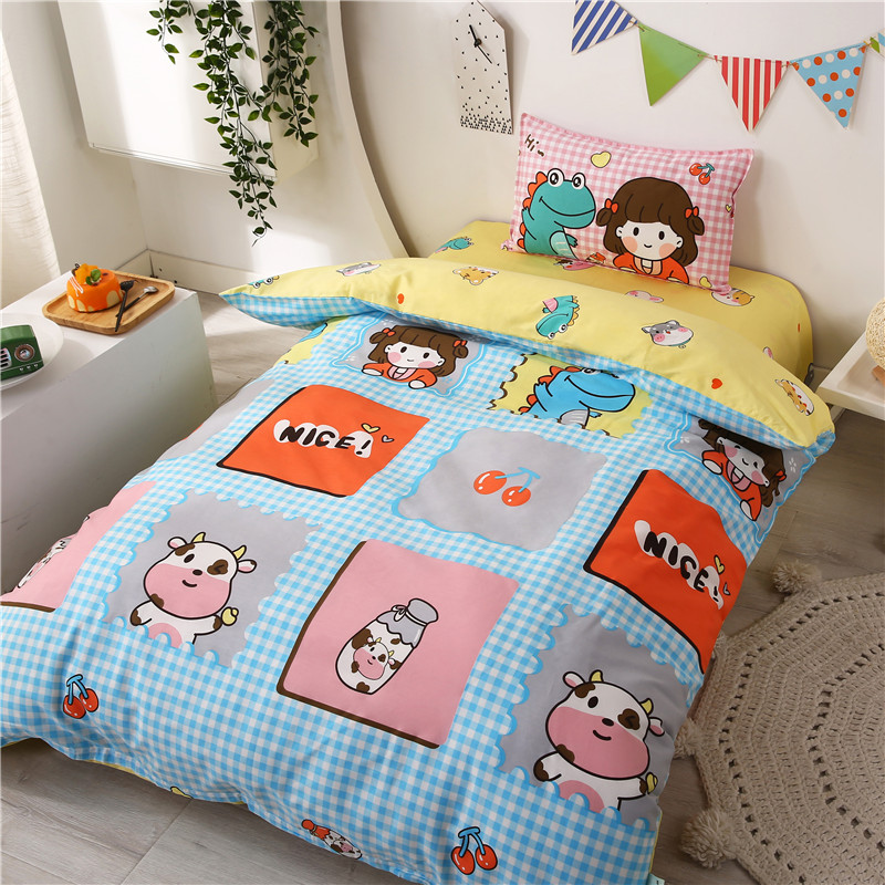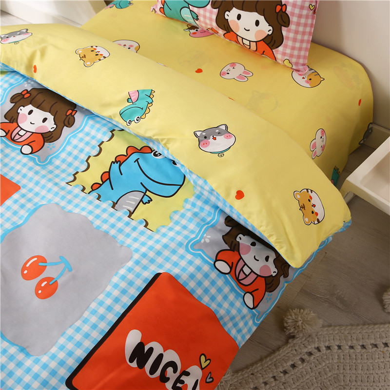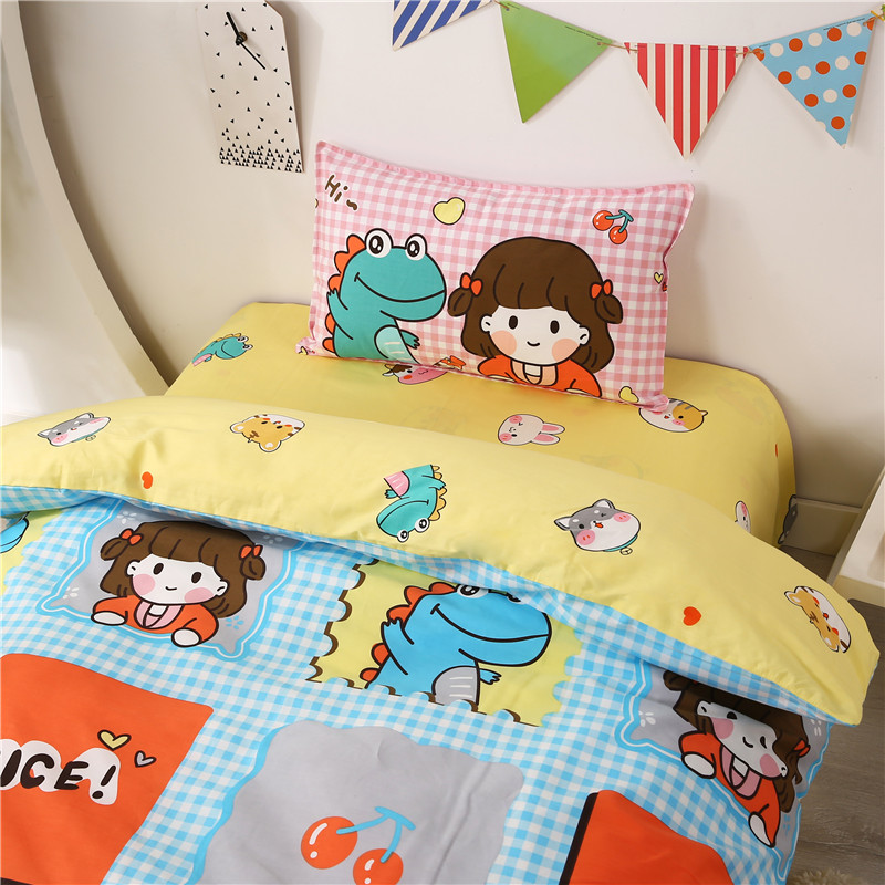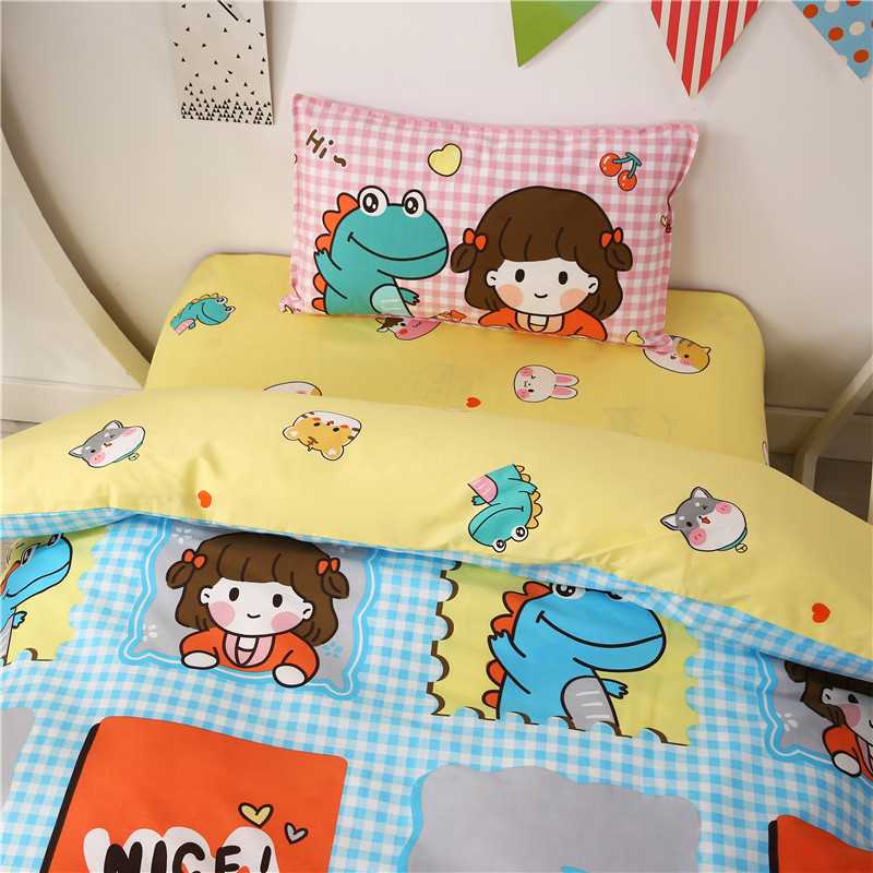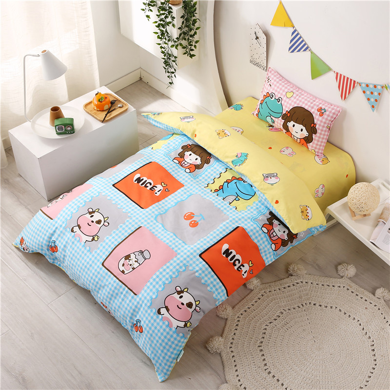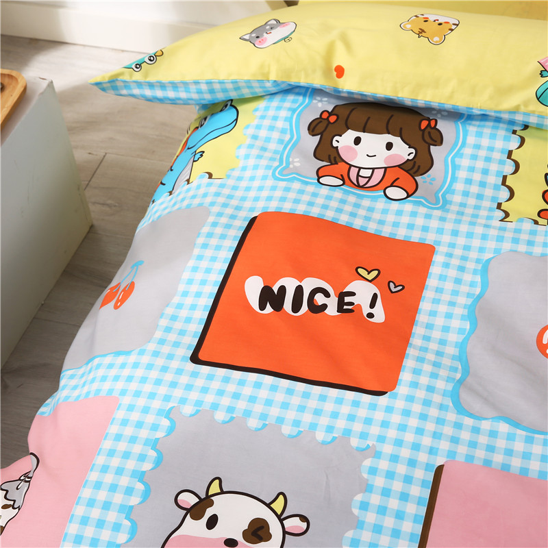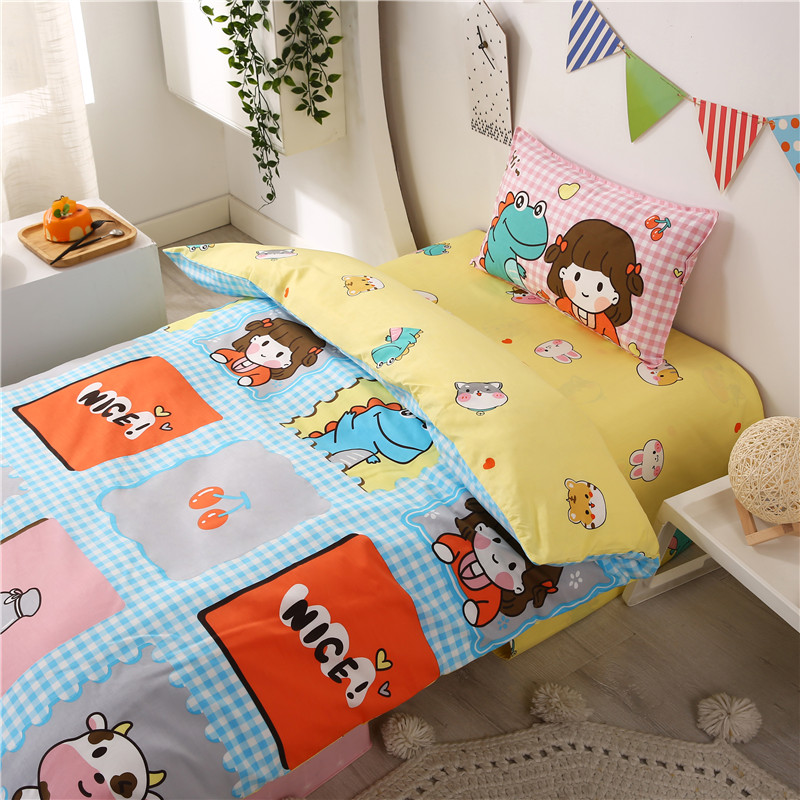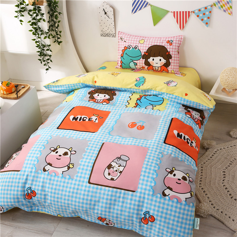 当前位置: 91家纺网 > 商品网购 > 床品套件 > 多件套 > 多件套 > 孩子王家纺 全棉13372小版卡通幼儿园多件套 格子女孩