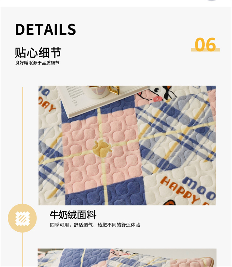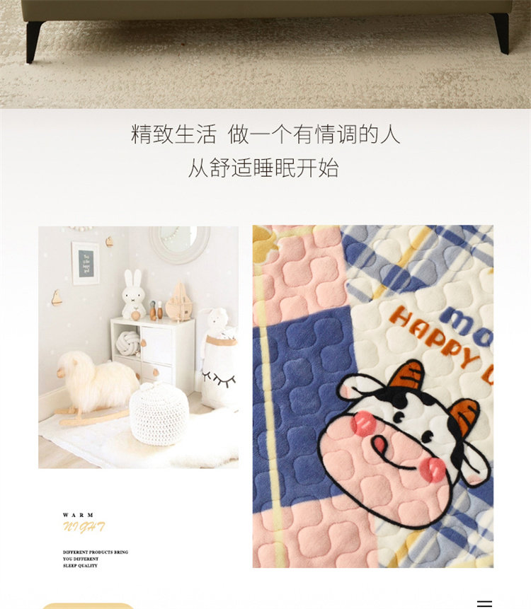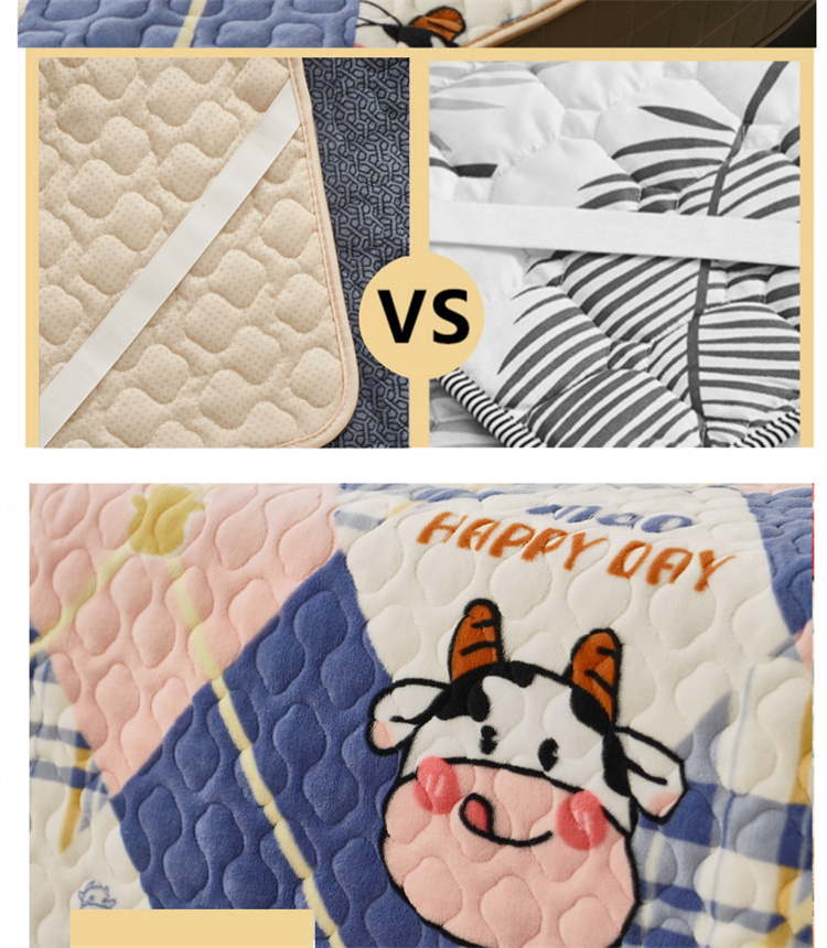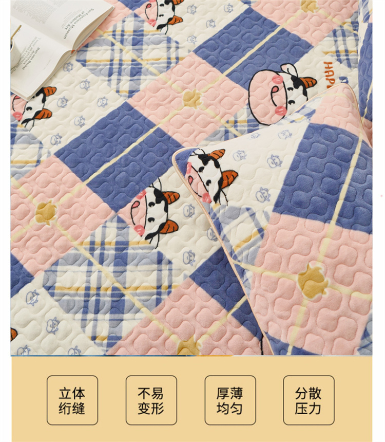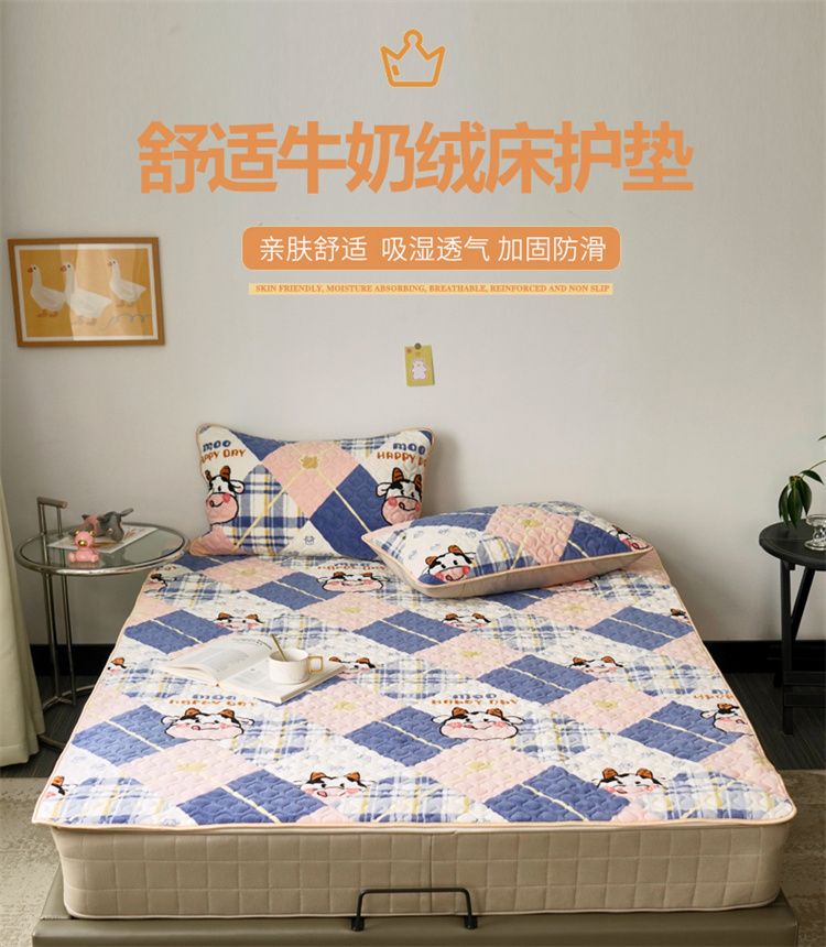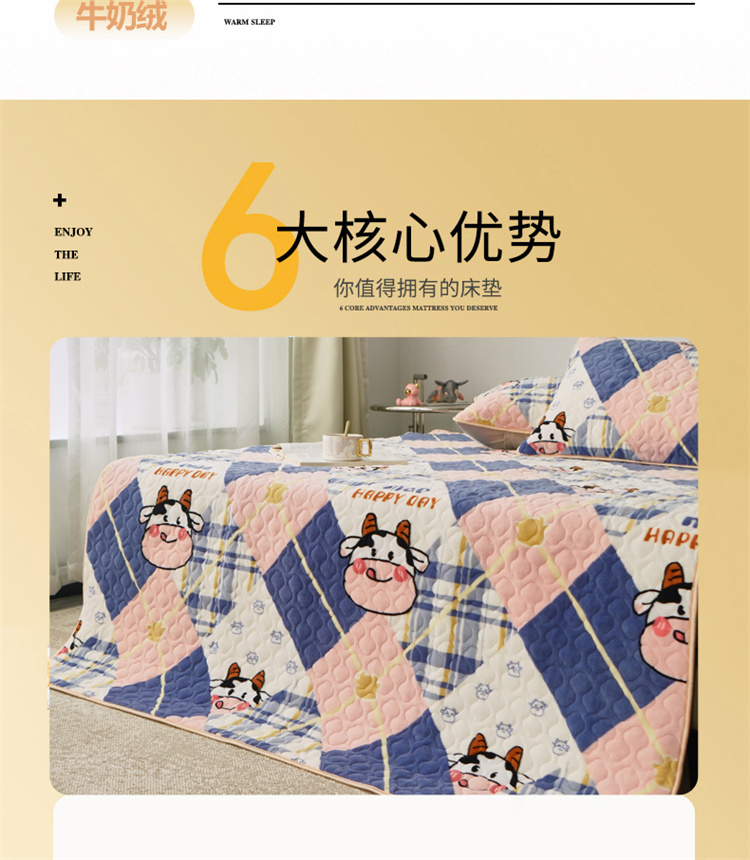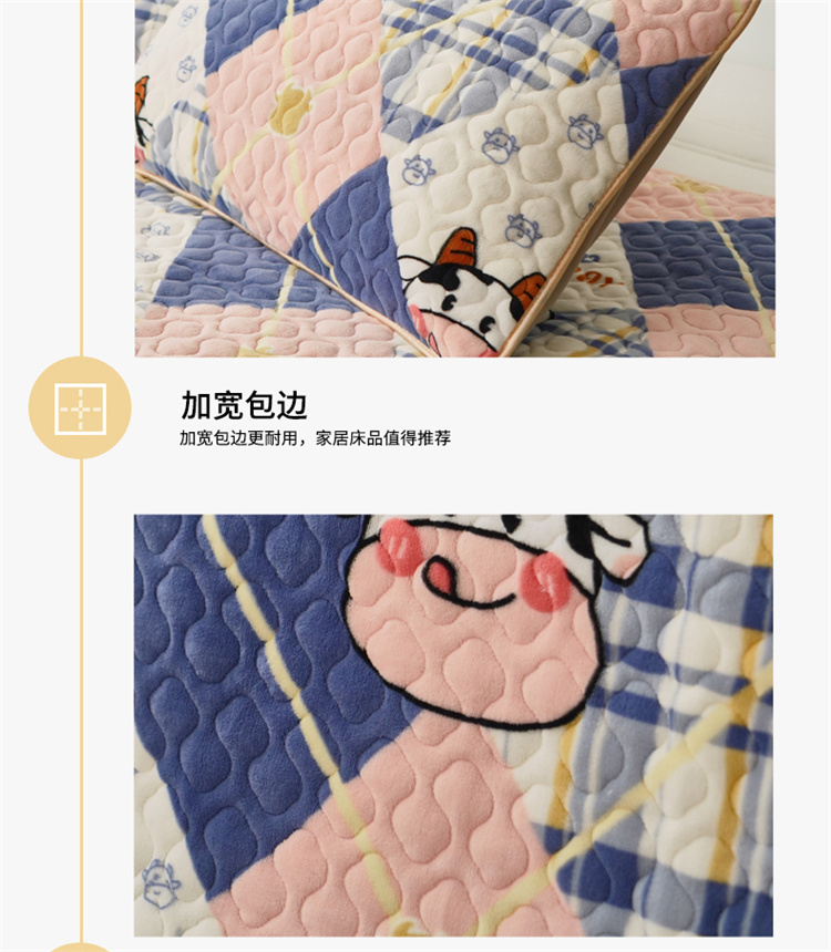 美优兰 2021新品加厚牛奶绒床垫床护垫床盖三件套可爱小牛