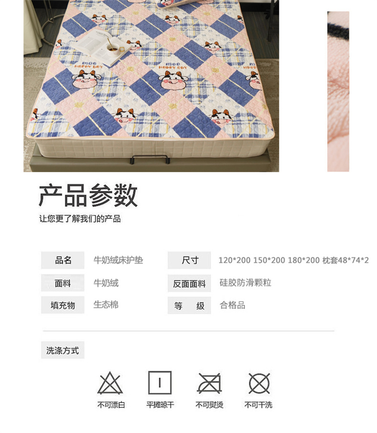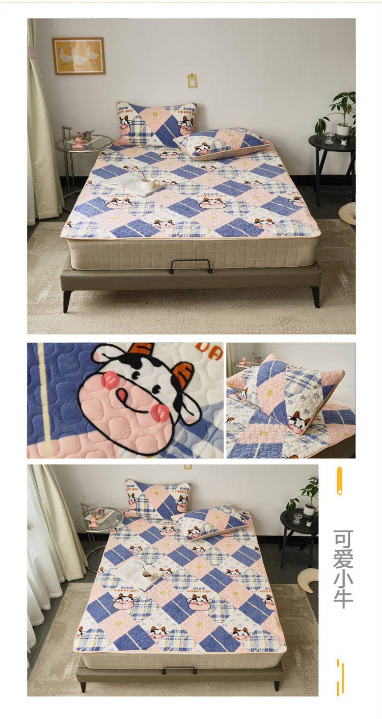 商品名称:美优兰 2021新品加厚牛奶绒床垫床护垫床盖三件套可爱小牛