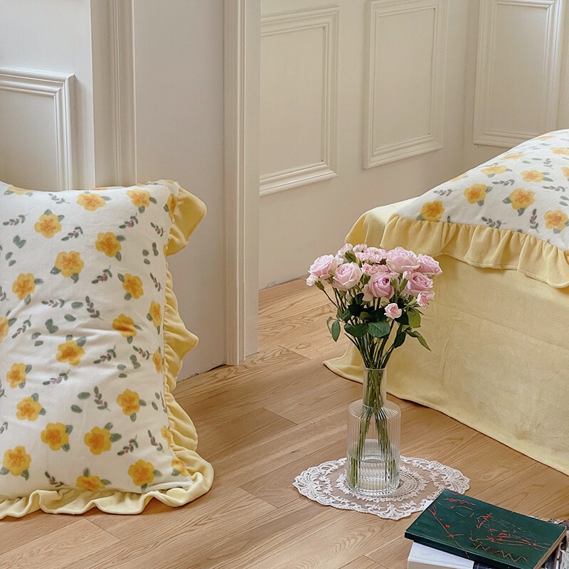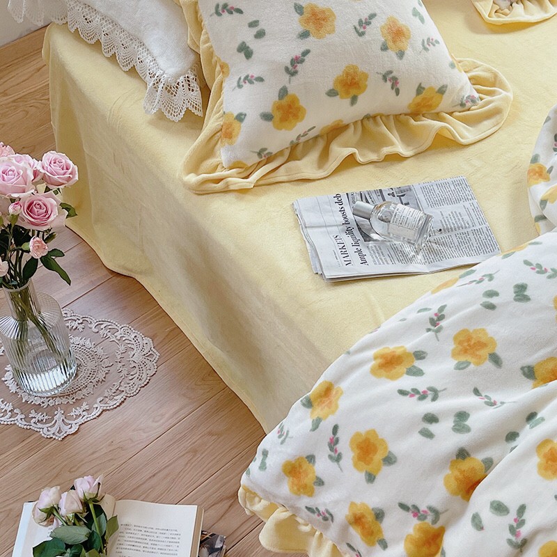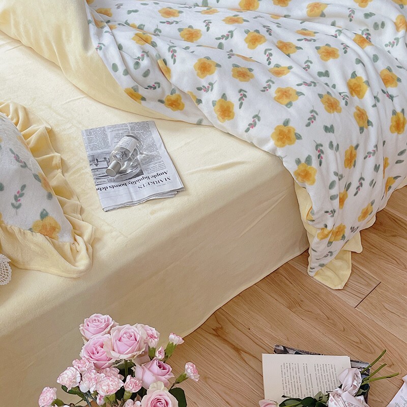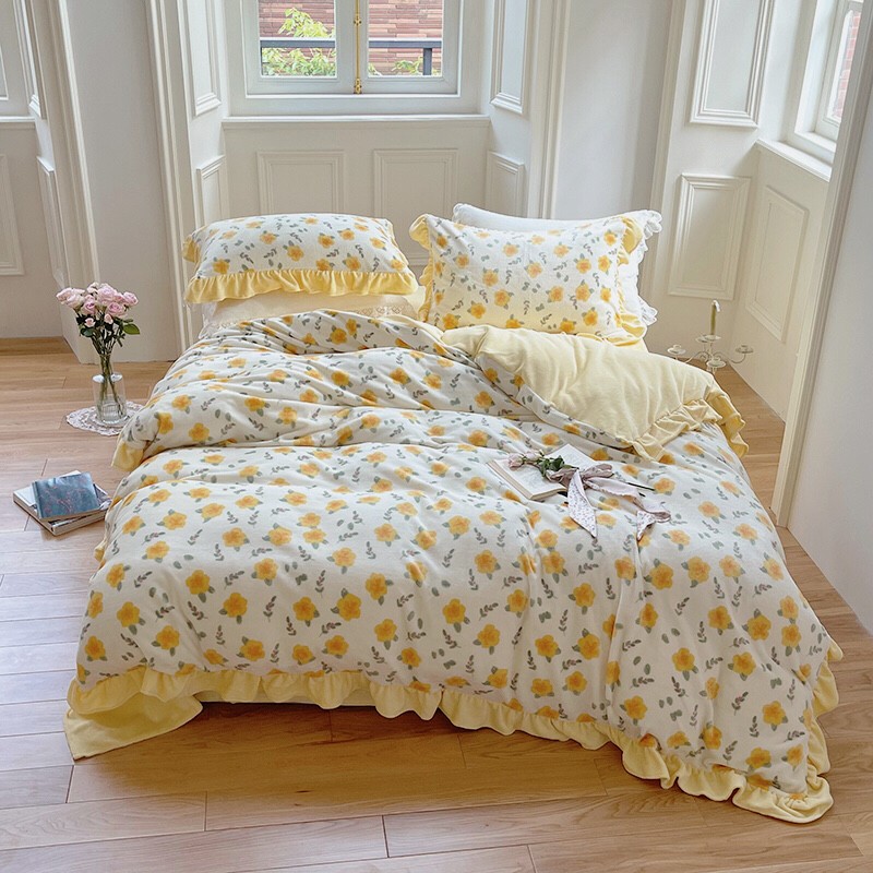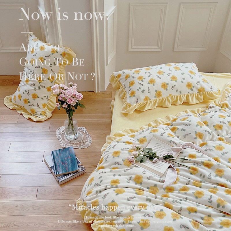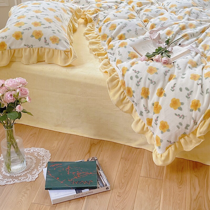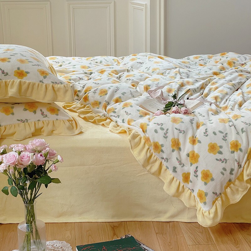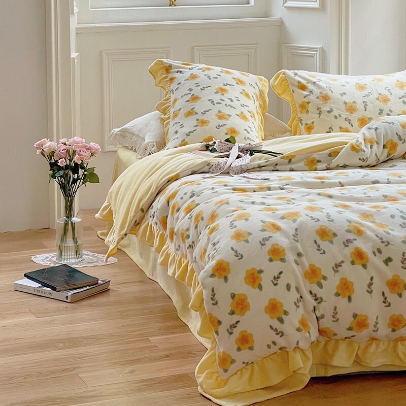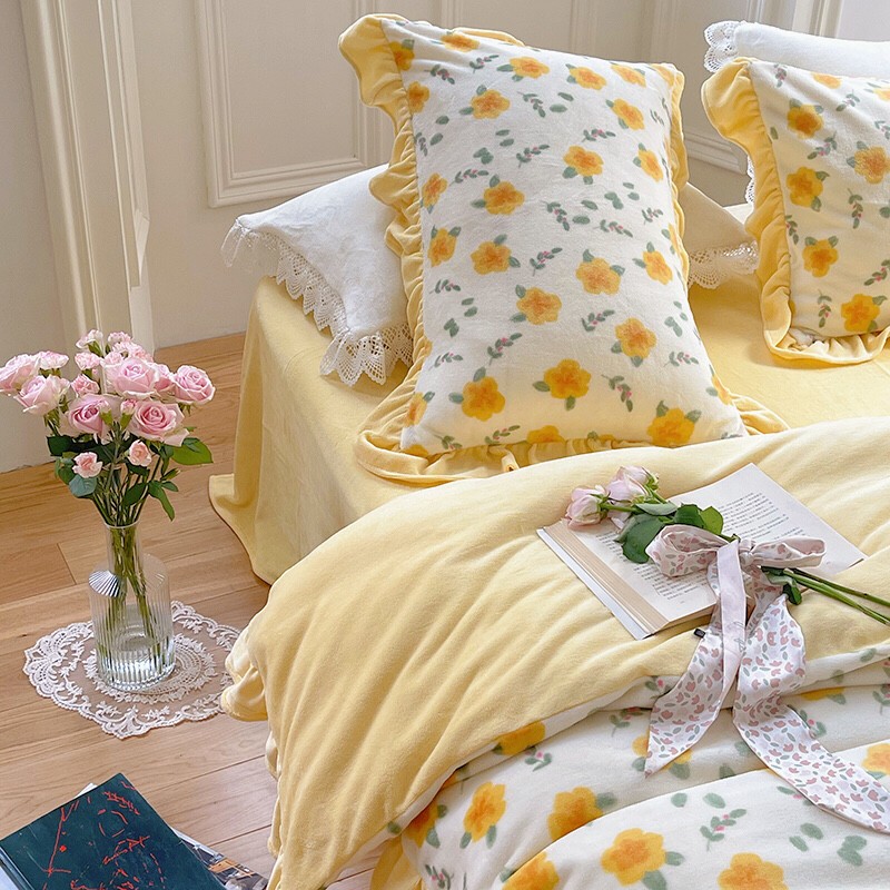 圆岛 2021新款法式浪漫牛奶绒四件套 星蔓 奶油黄