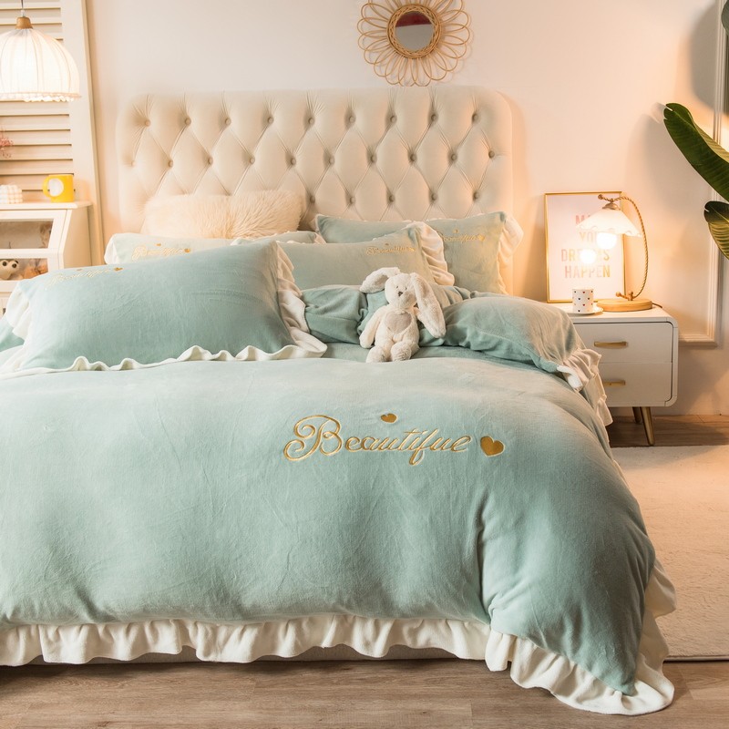 商品名称:丝羽坊 2021新款牛奶绒韩系心意系列四件套 豆绿