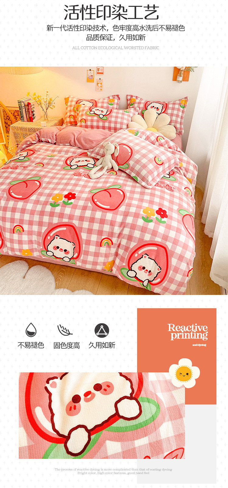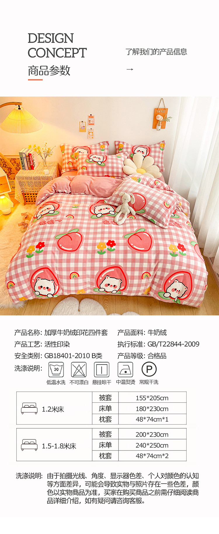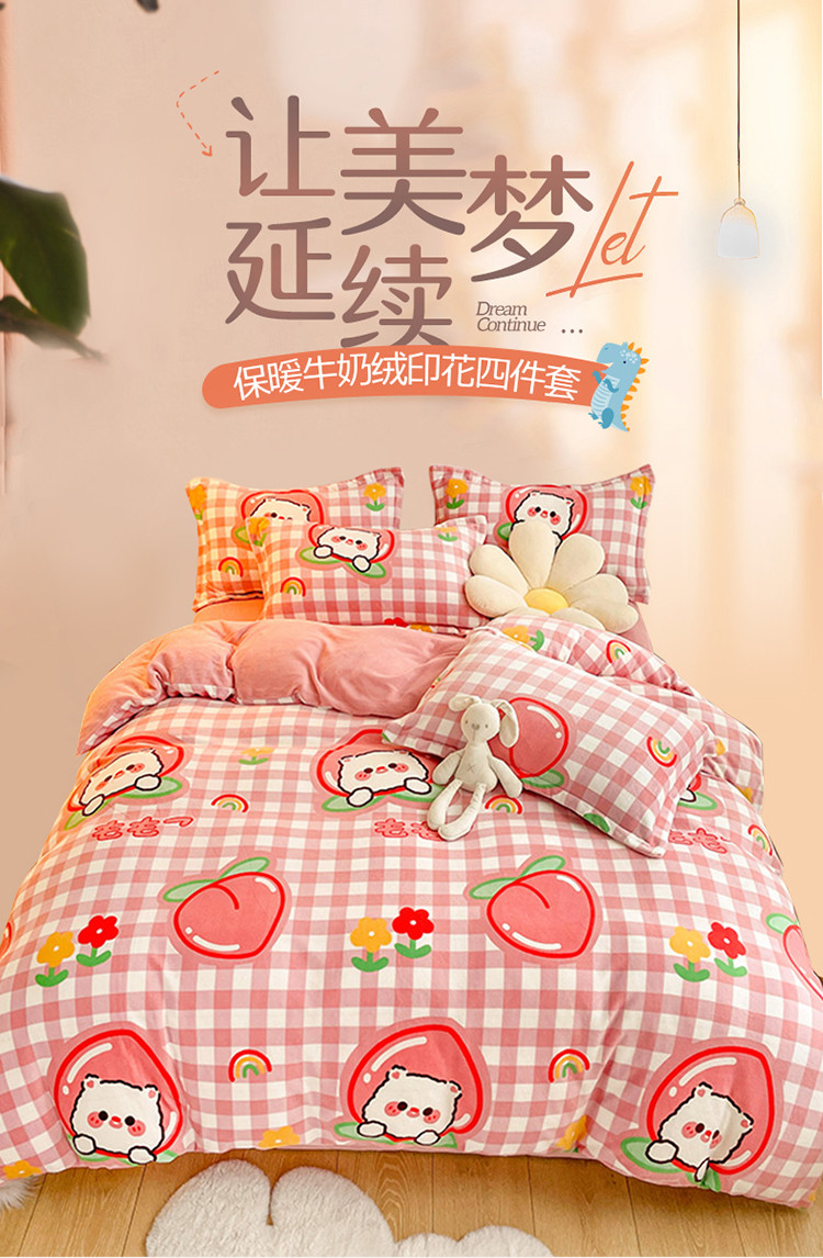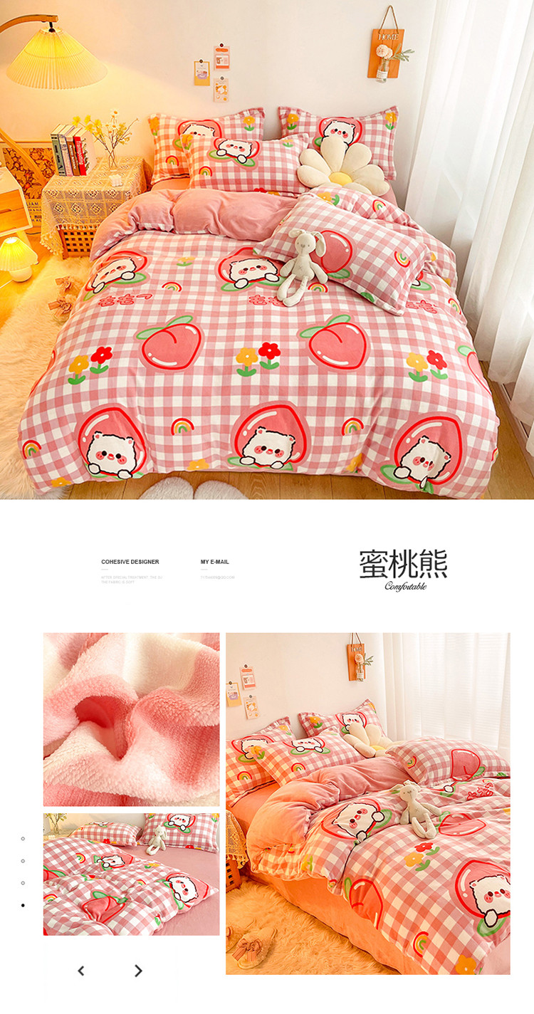 商品名称:沐棉 2021新款卡通牛奶绒四件套新拍 蜜桃熊