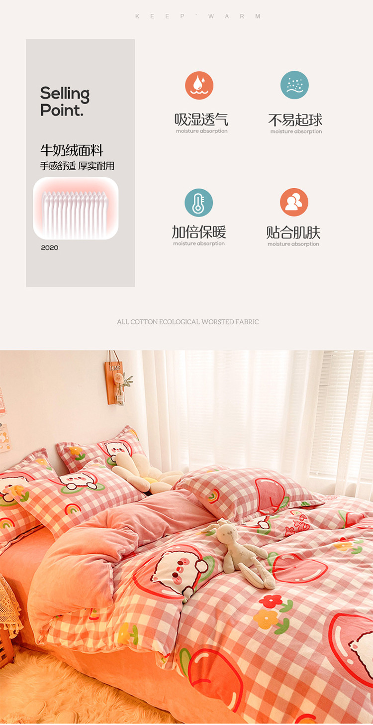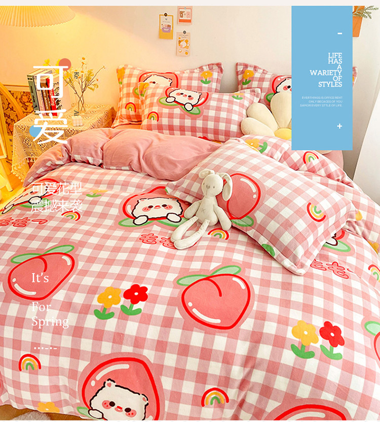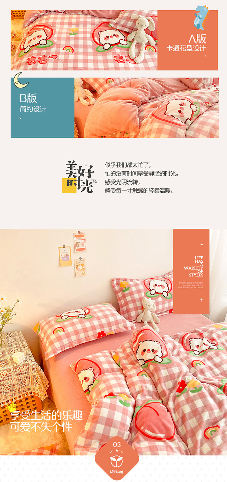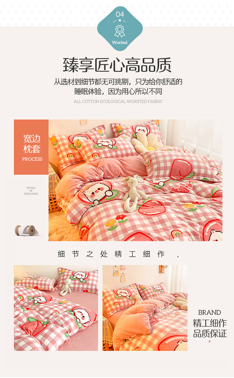 商品名称:沐棉 2021新款卡通牛奶绒四件套新拍 蜜桃熊