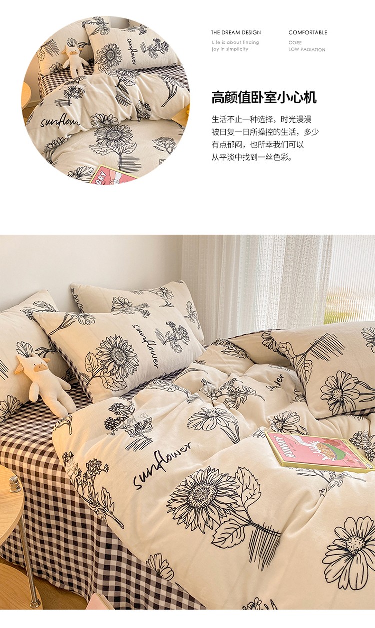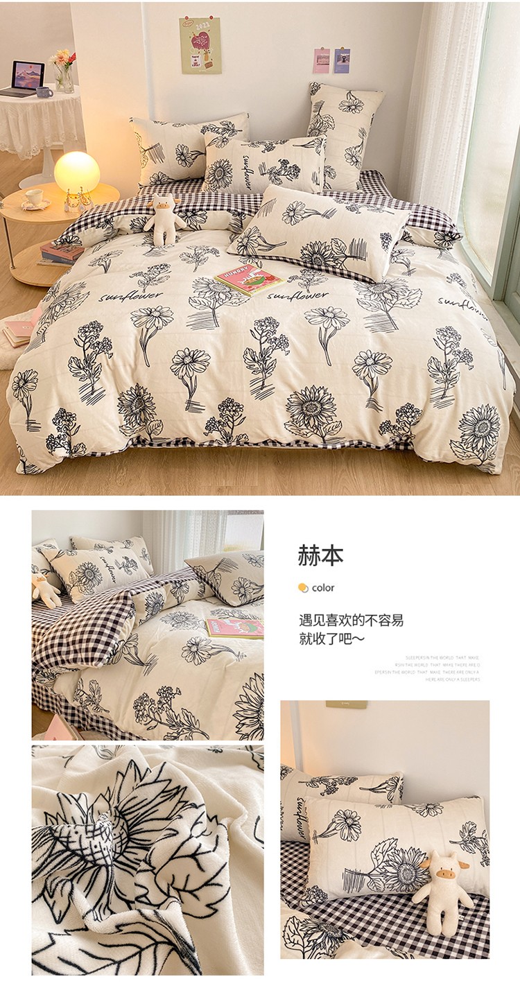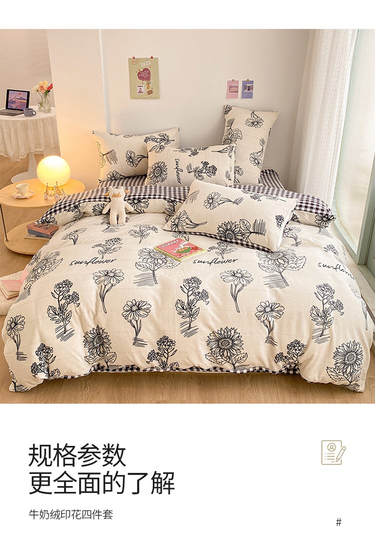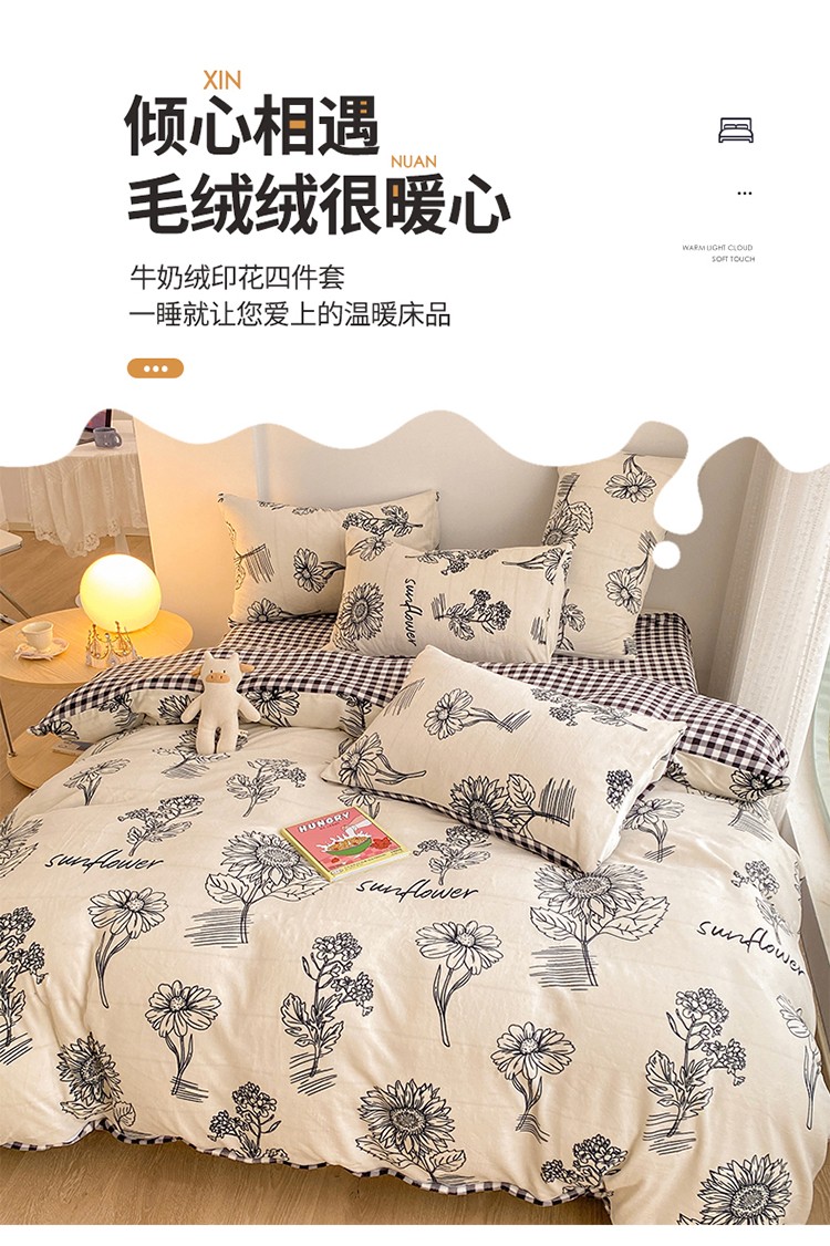 商品名称:雅居纺 2022新款印花牛奶绒四件套 赫本