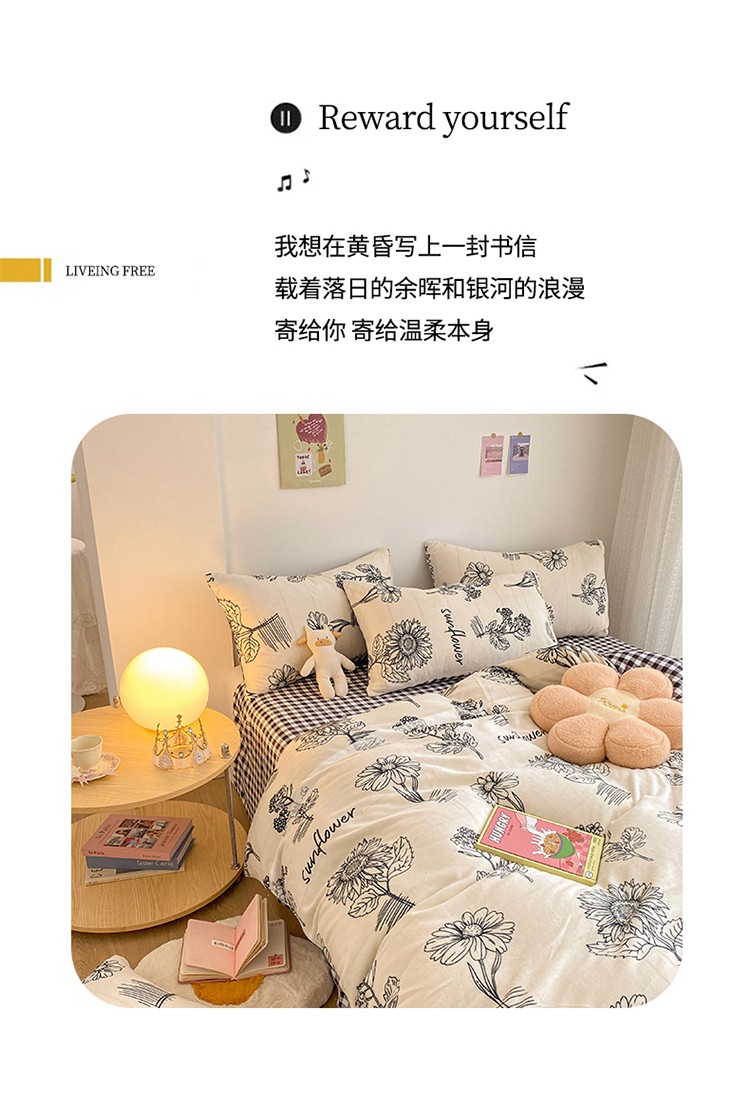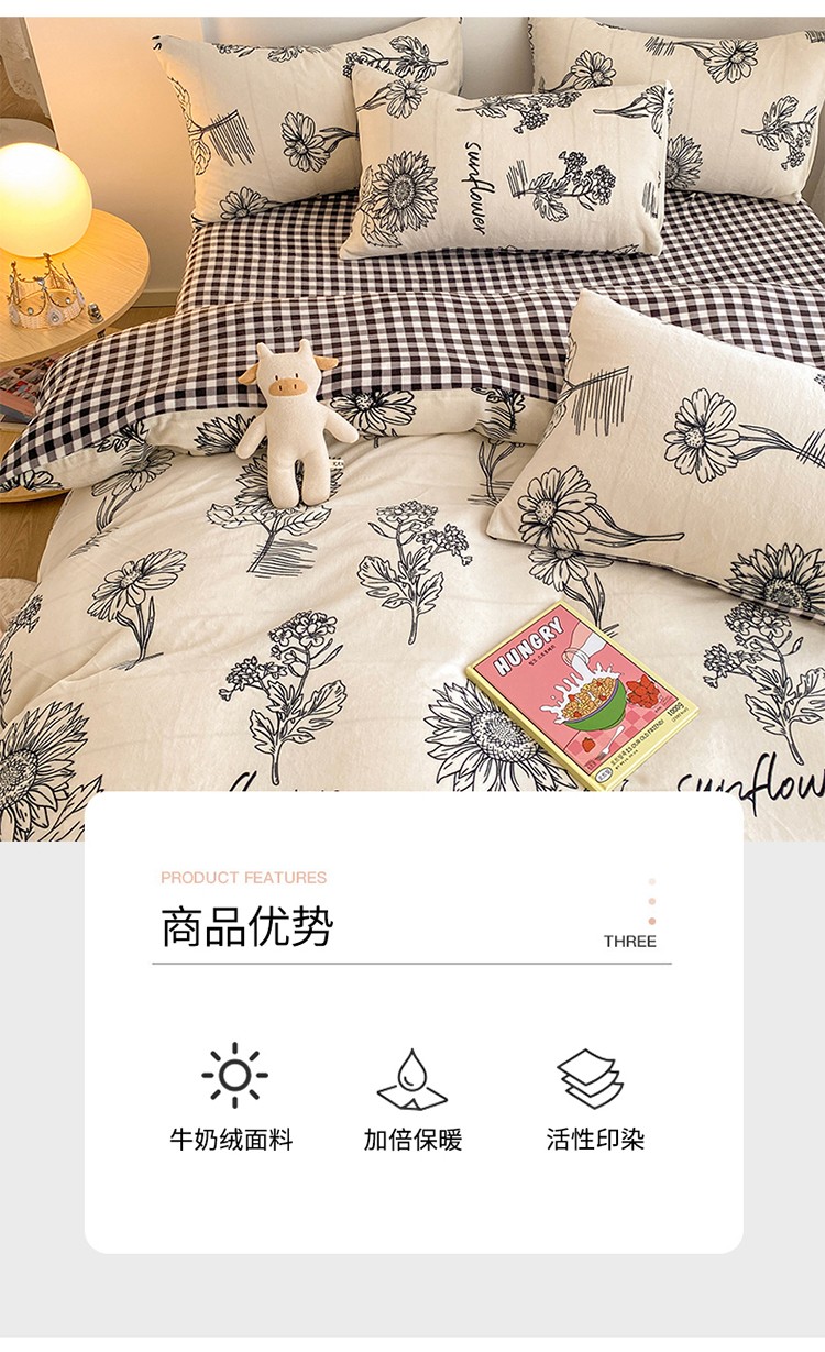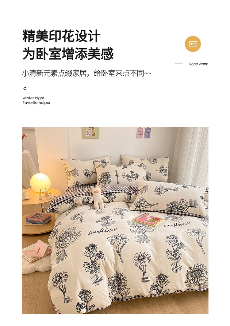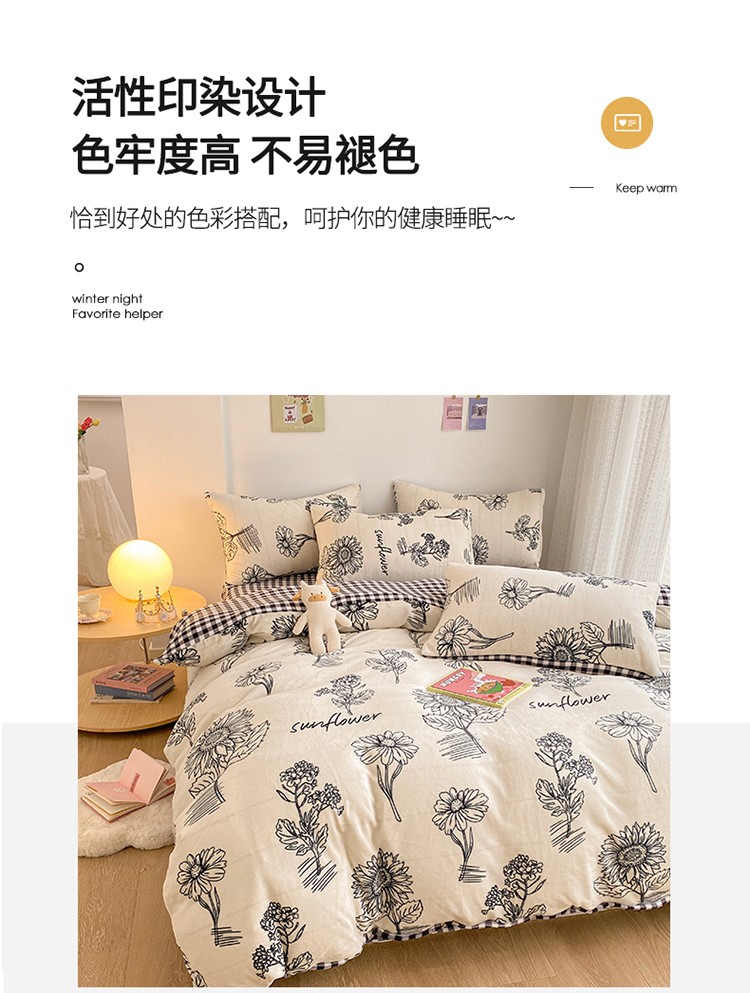 商品名称:雅居纺 2022新款印花牛奶绒四件套 赫本