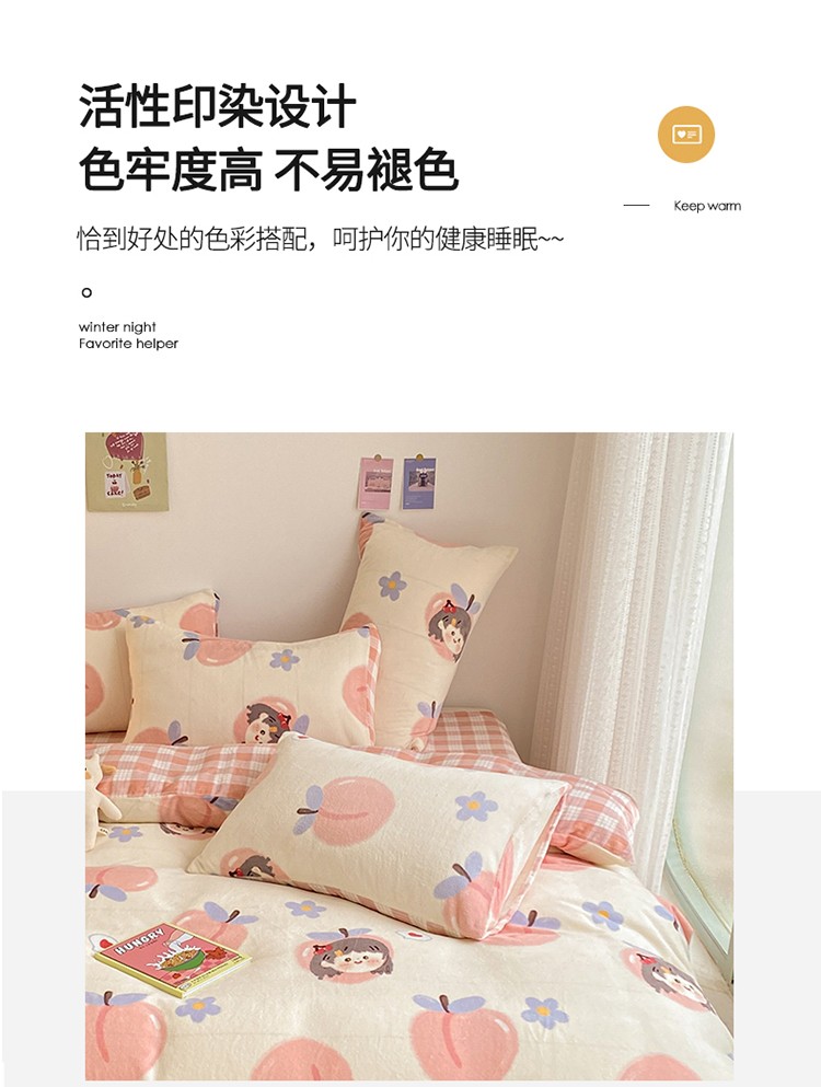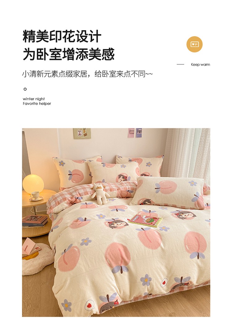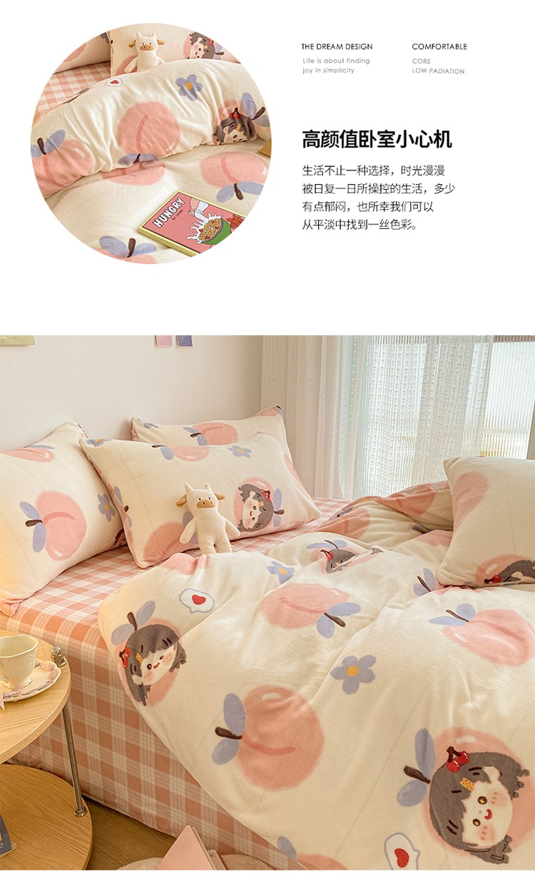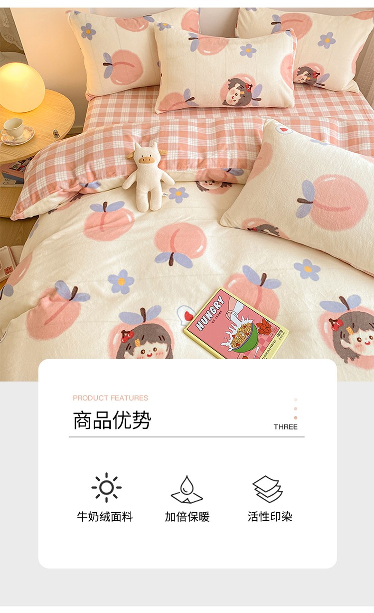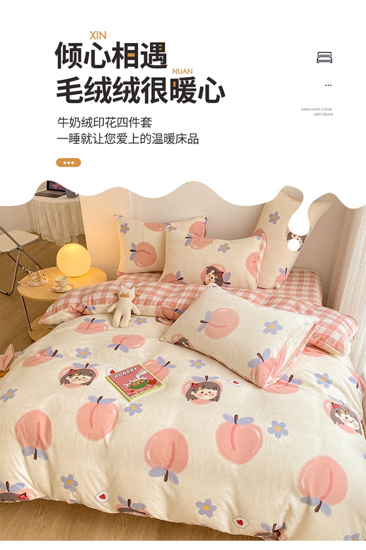 商品名称:雅居纺 2022新款印花牛奶绒四件套 桃女郎