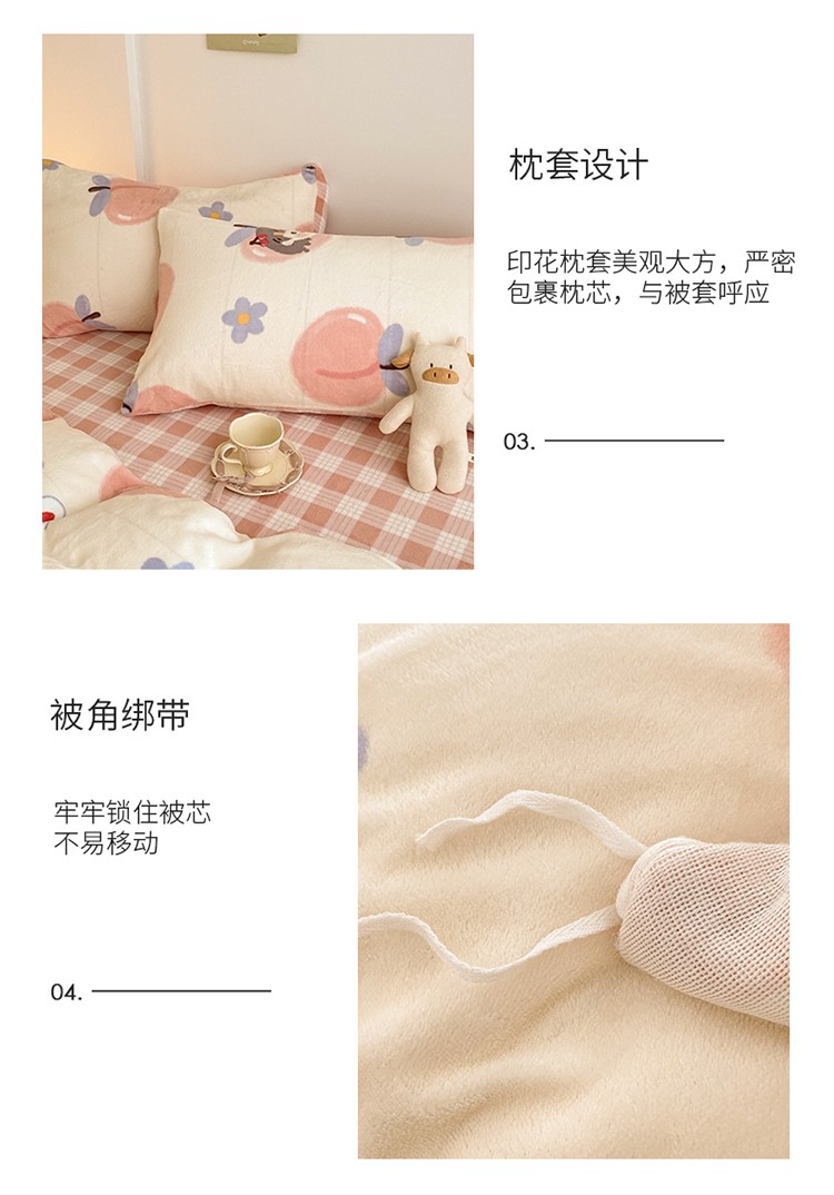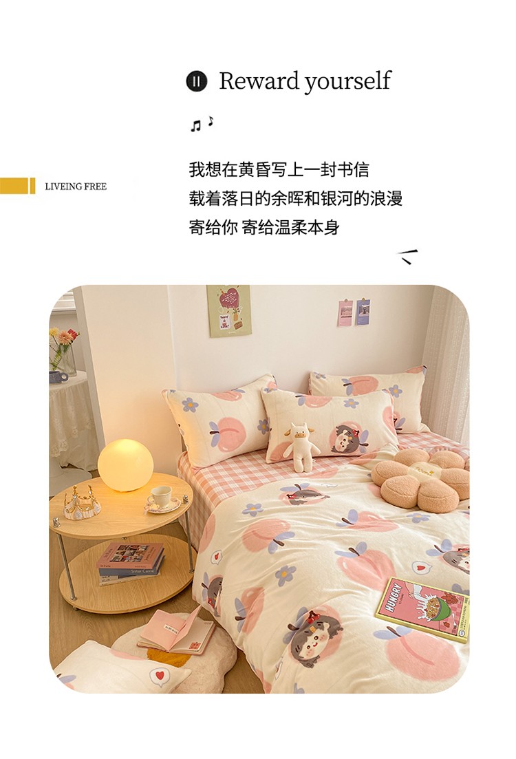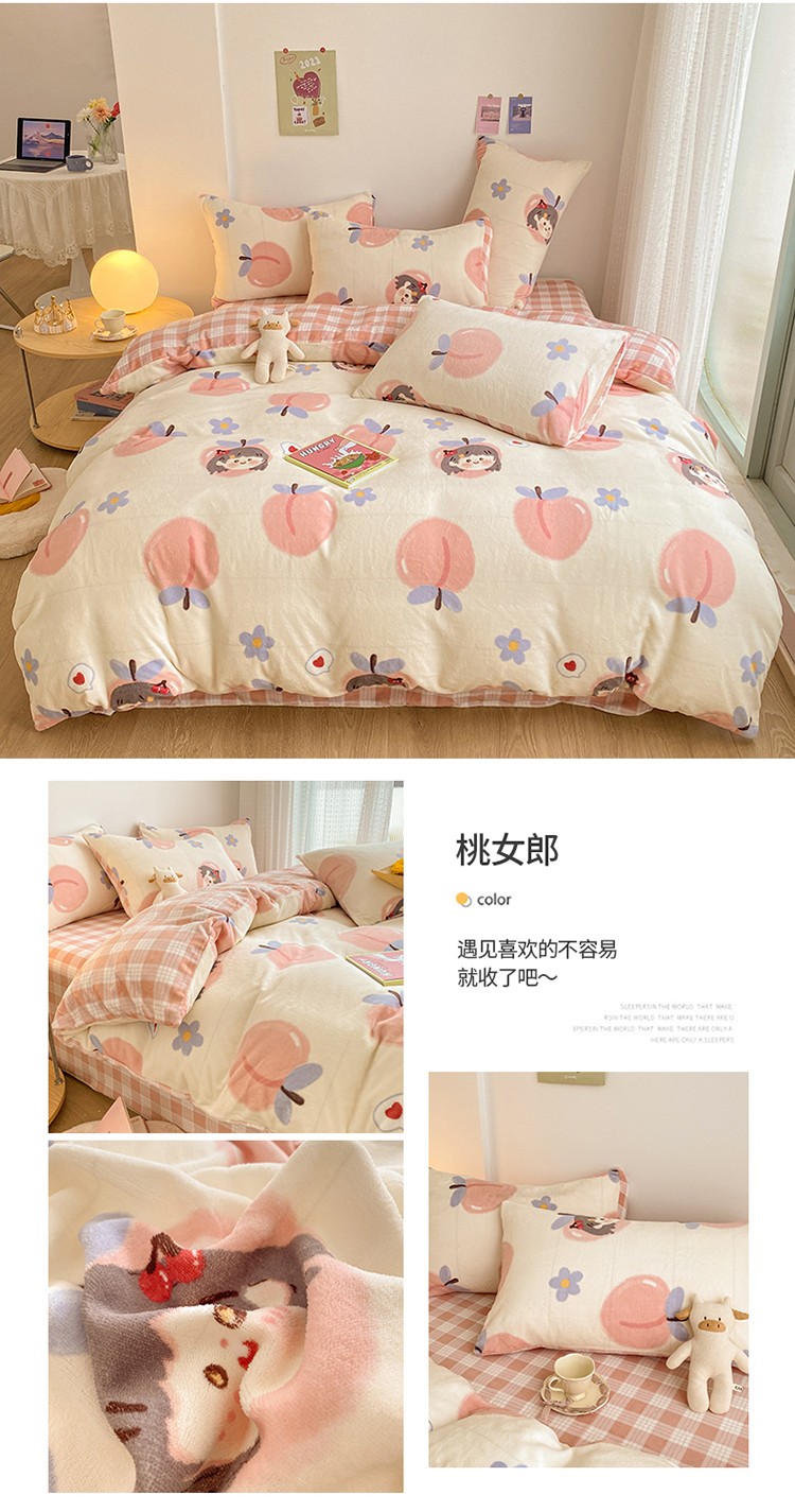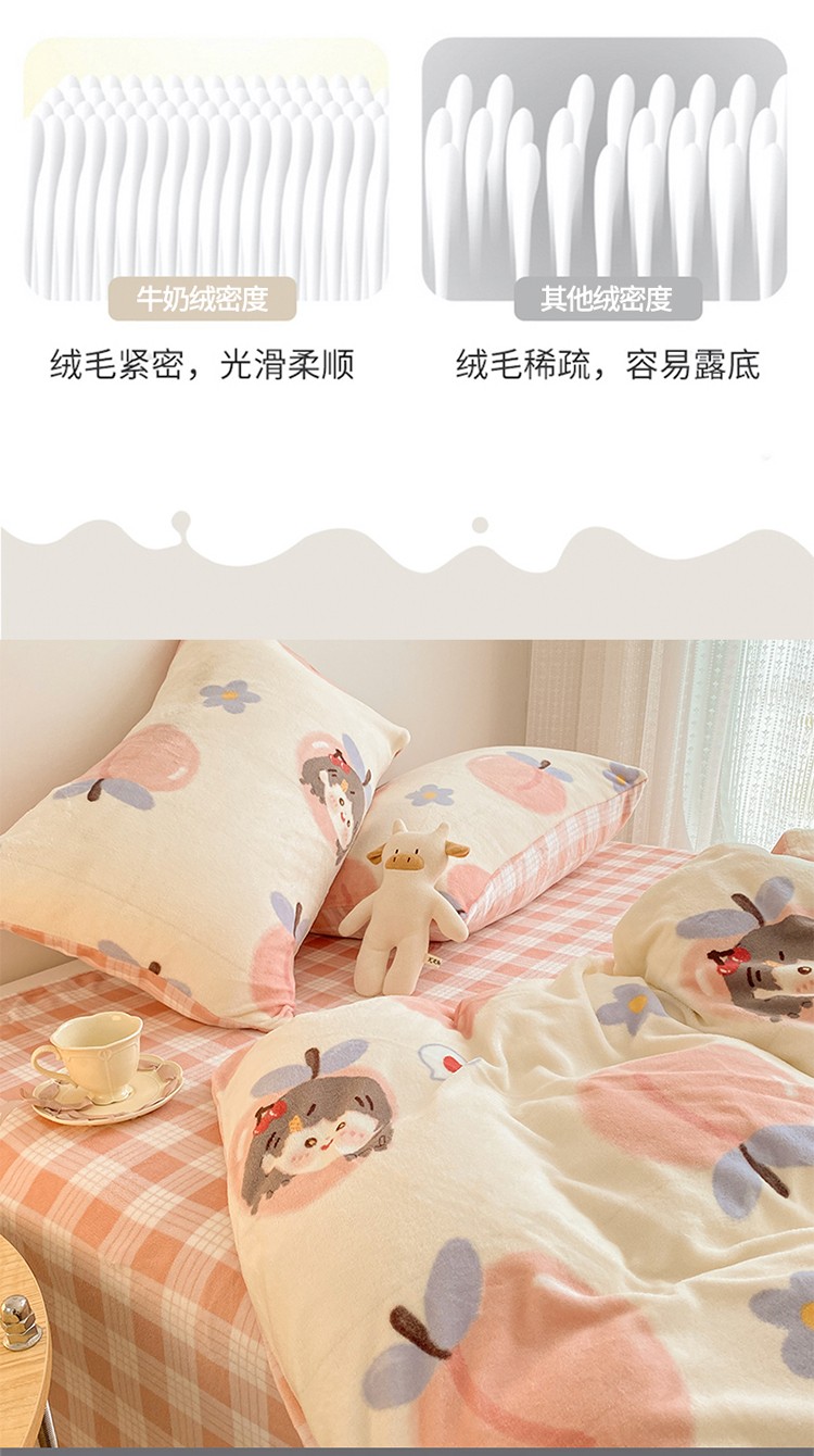 商品名称:雅居纺 2022新款印花牛奶绒四件套 桃女郎