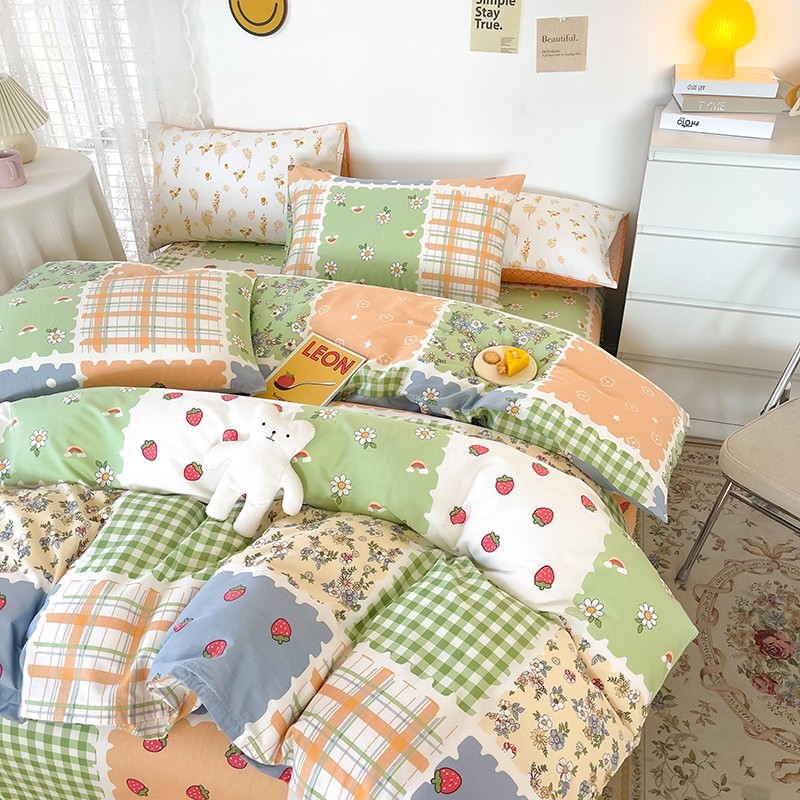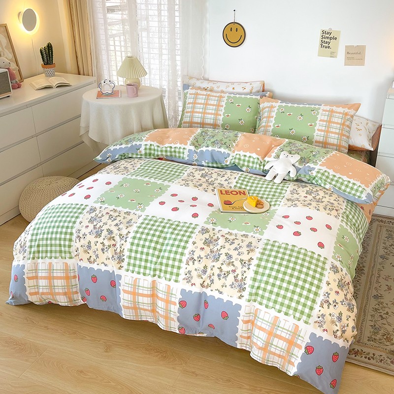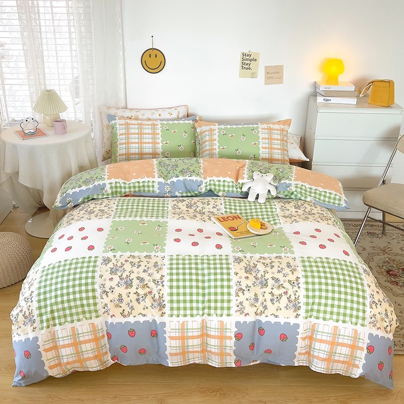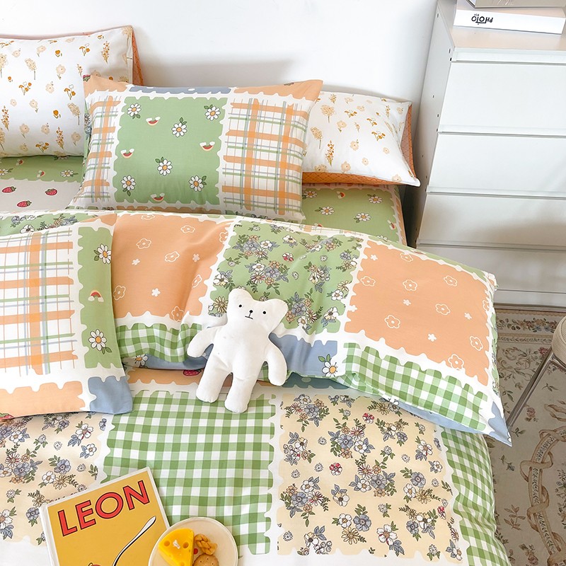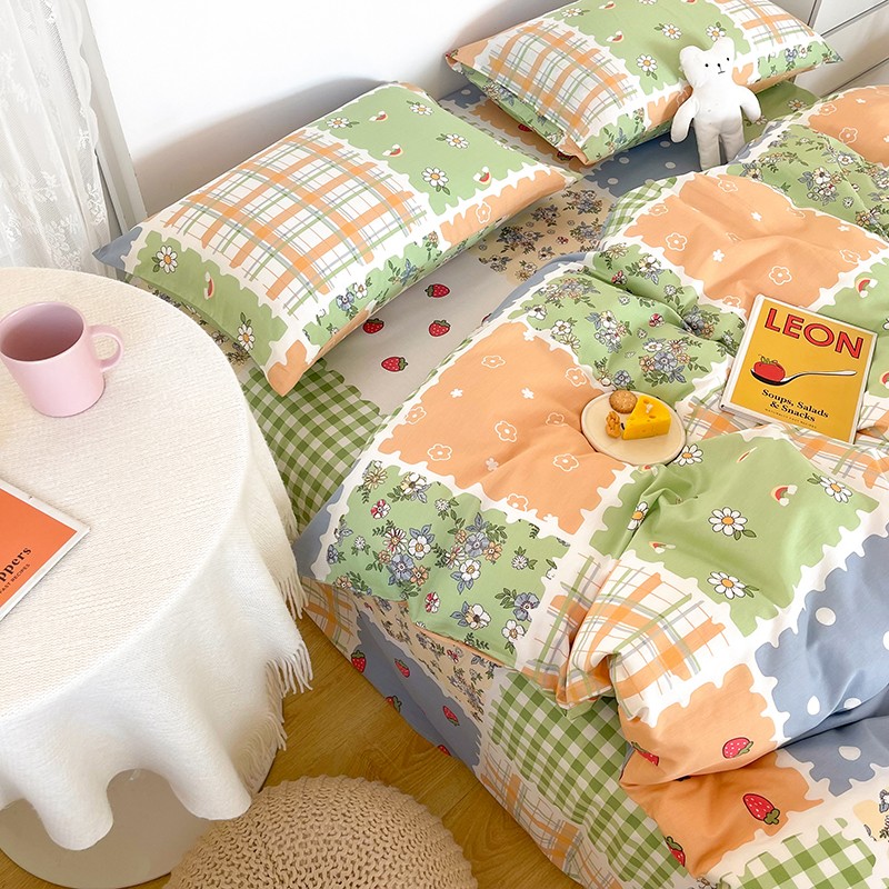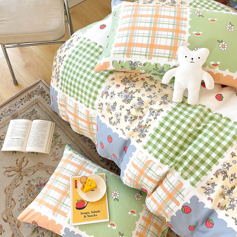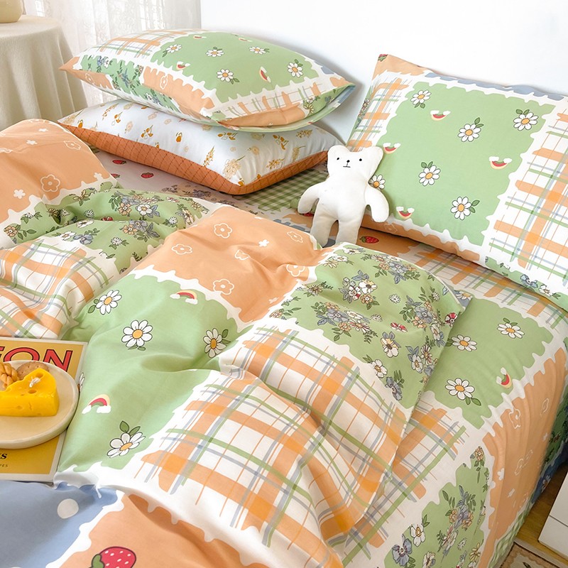 感遇家纺 2022新款全棉印花四件套 格子小花