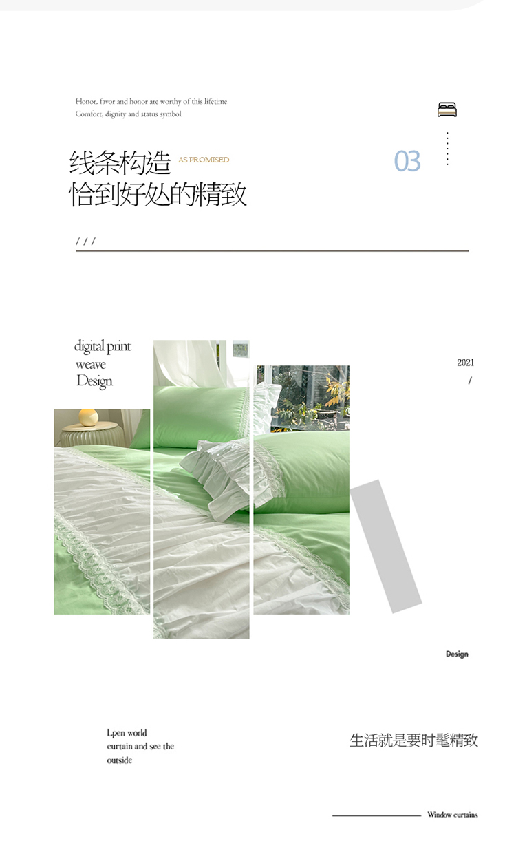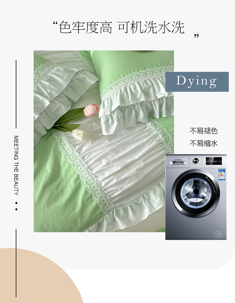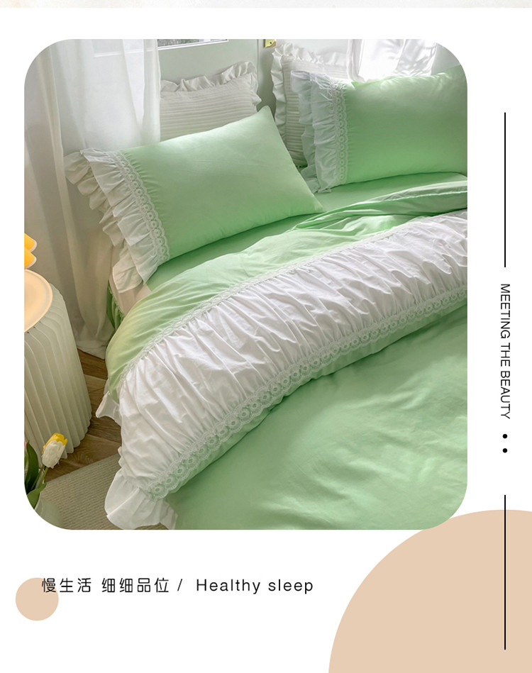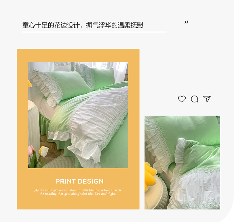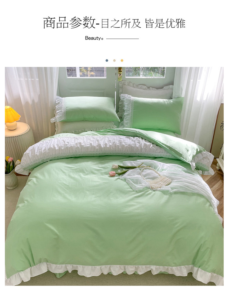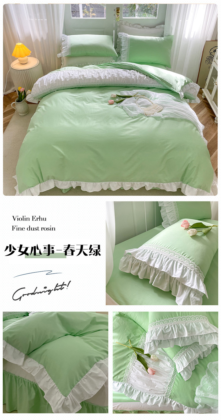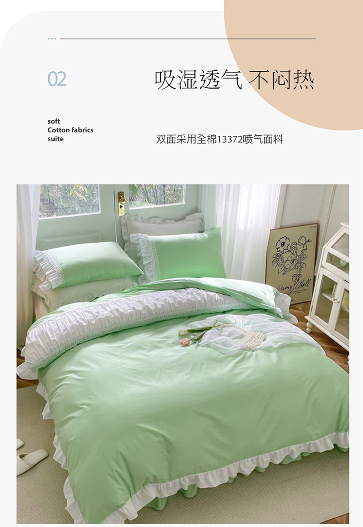 商品名称:淑女公社 2022新款全棉少女心事系列四件套 春天绿