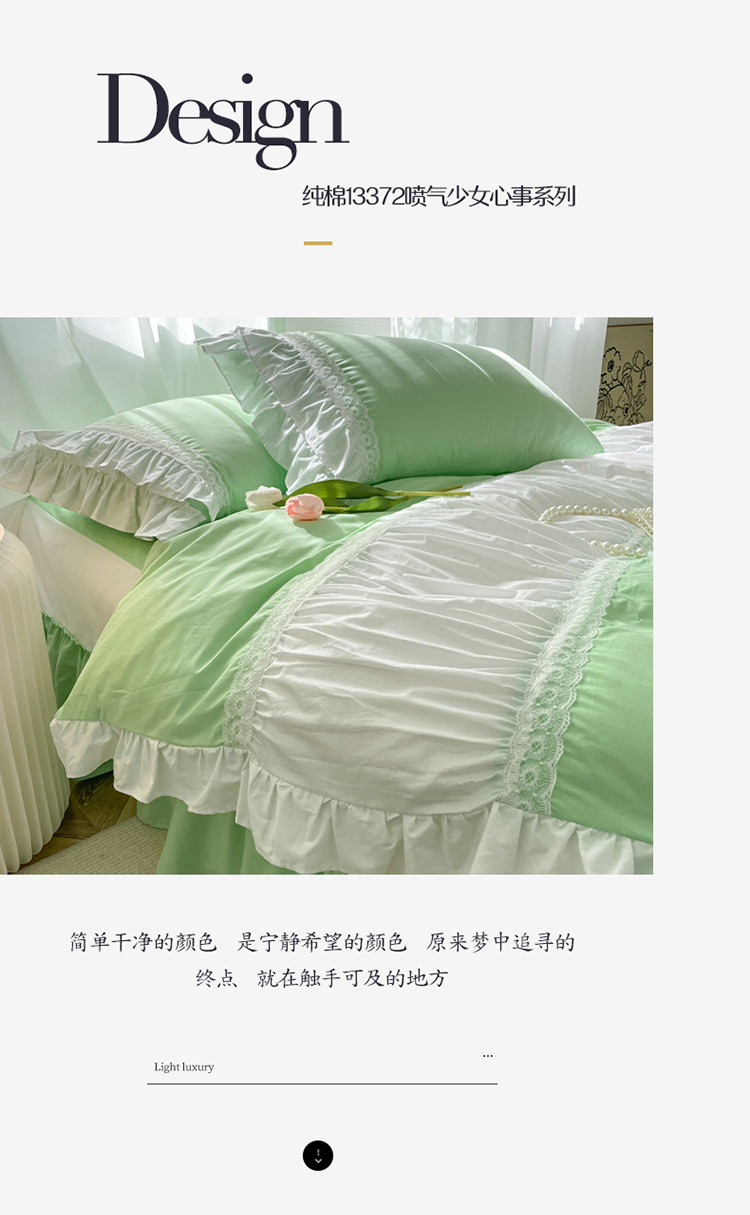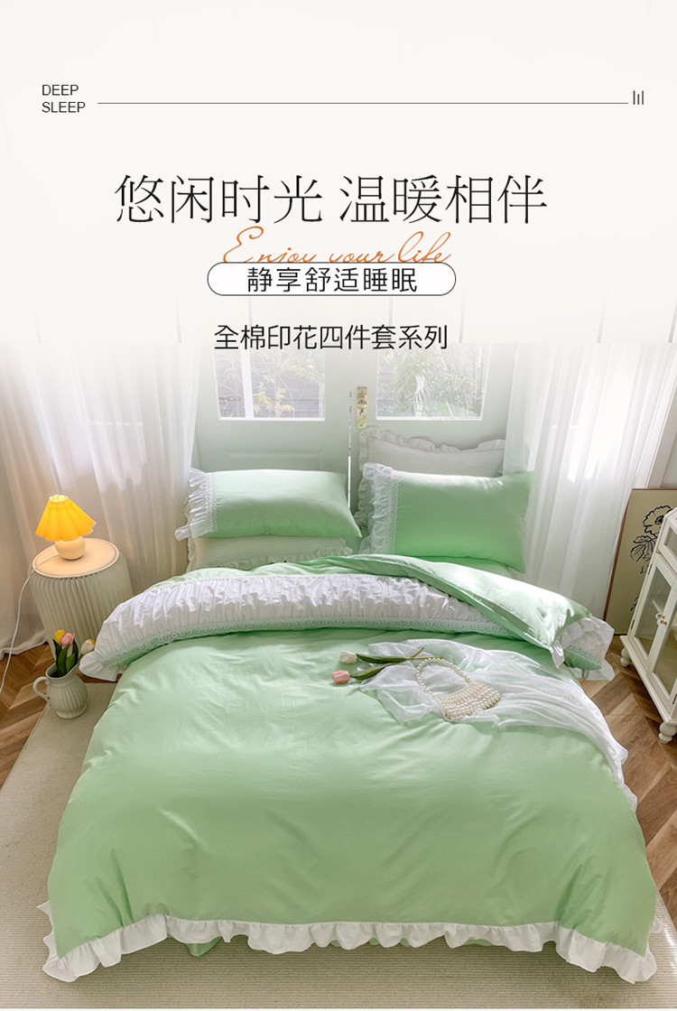 淑女公社 2022新款全棉少女心事系列四件套 春天绿